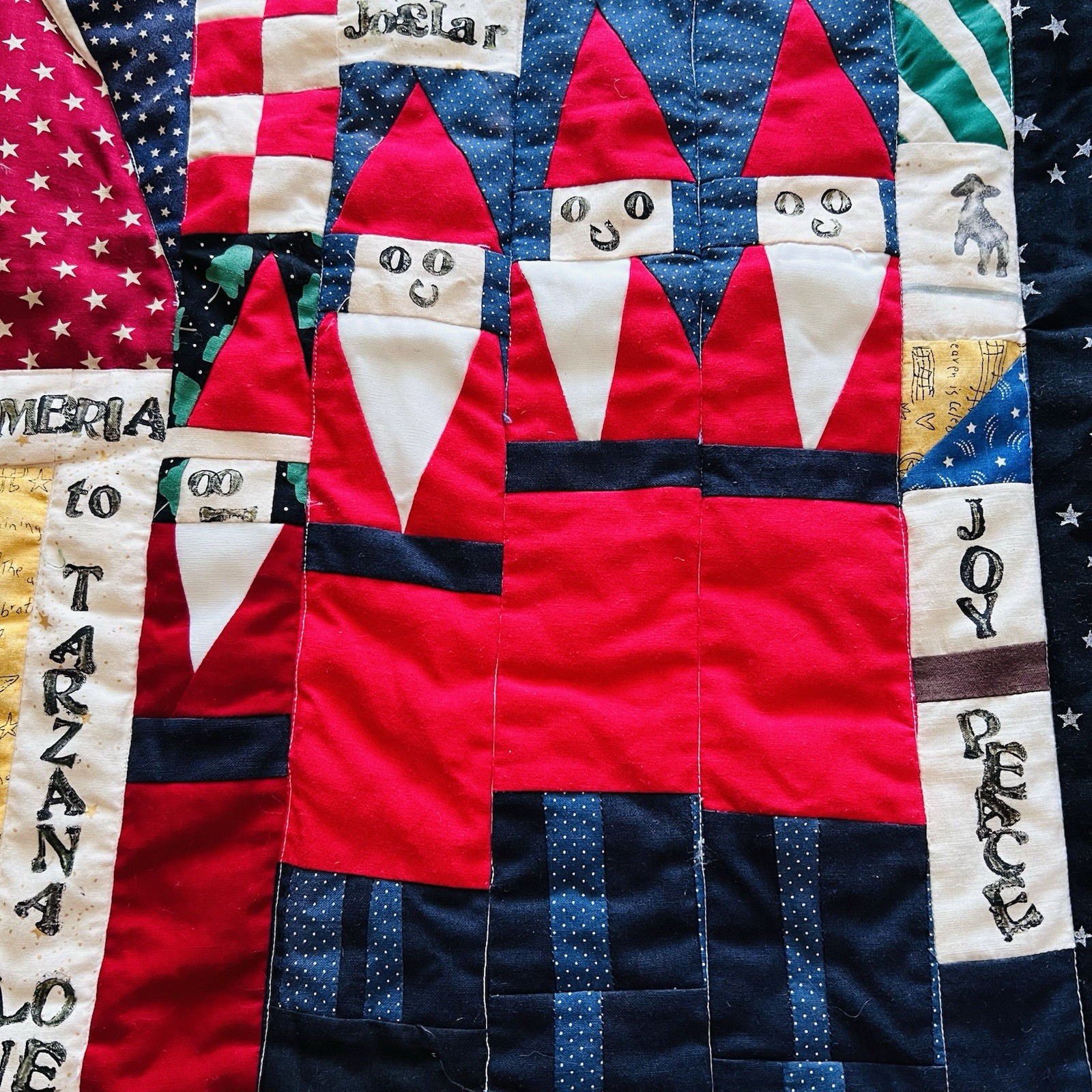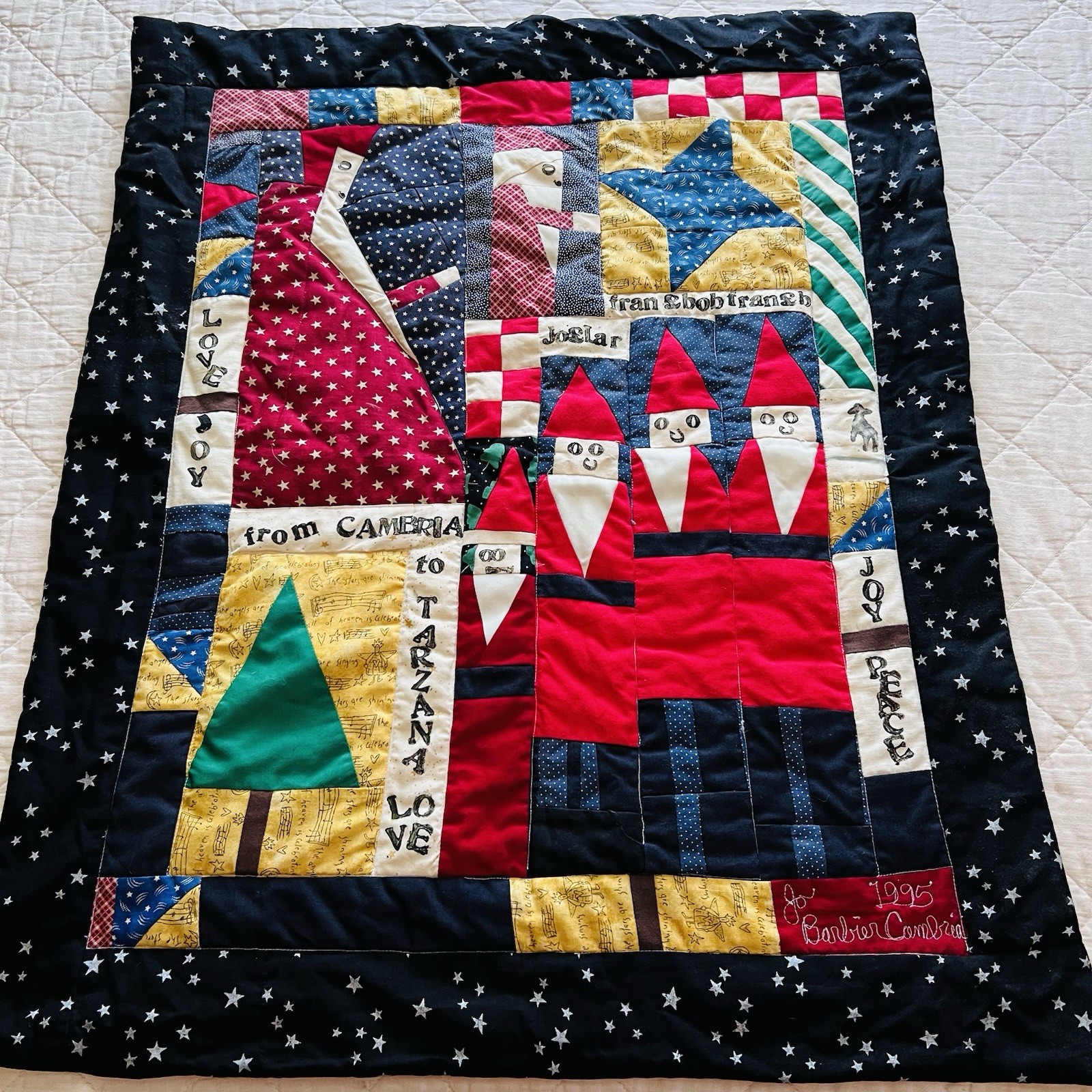 Vintage 1995 Christmas Quilt Wall Hanging Handmade, Santa Folk Art, 24 x 30