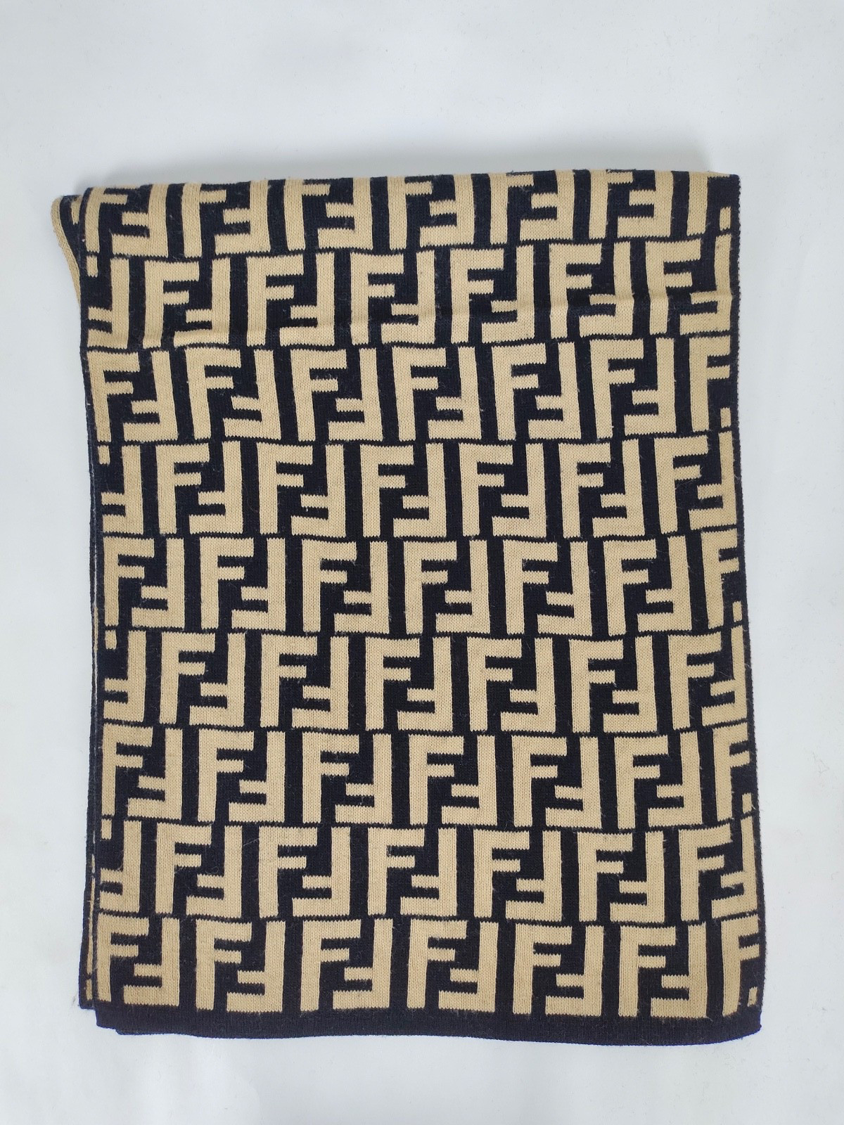 Fendi genuine vintage patterned Beige / Black Wool winter Scarf Scarves