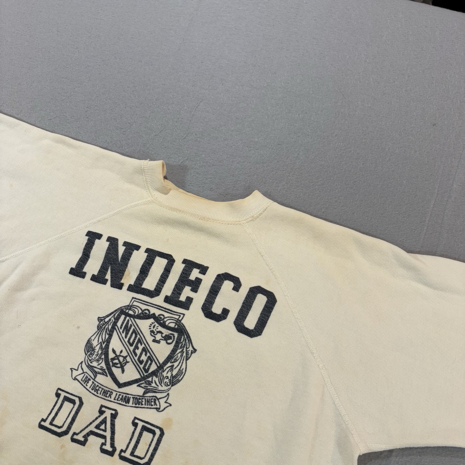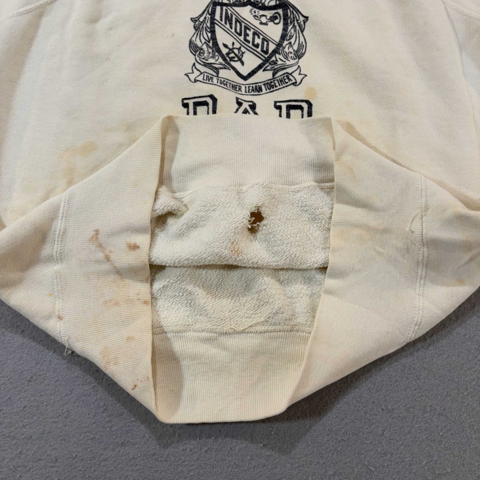 как выглядит Vintage 60s Healthknit Sweatshirt Crewneck Crest University Distressed Stains фото