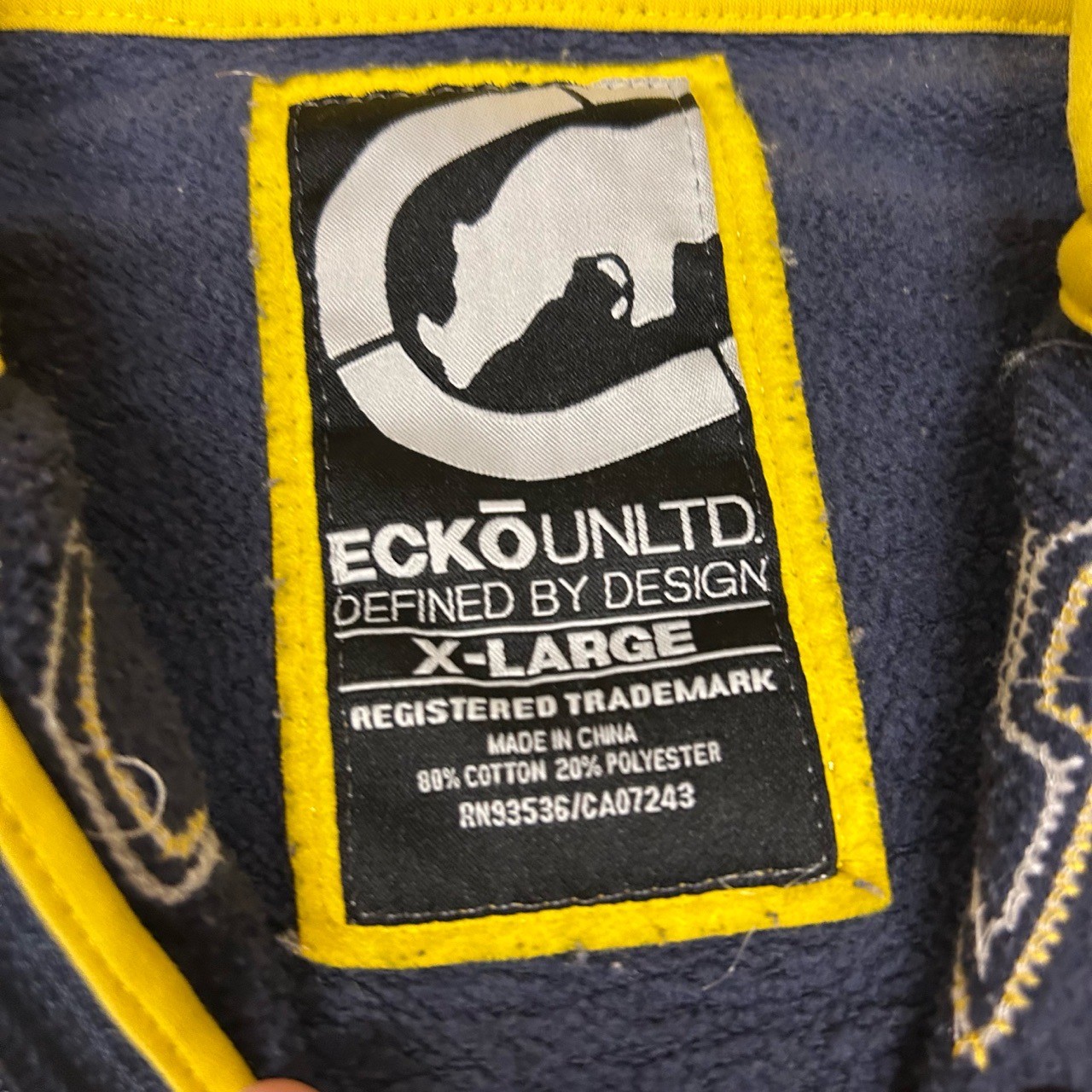 Ecko Unltd Hoodie Men XL Navy Blue Full Zip Y2K Grunge Skater Streetwear Hip Hop