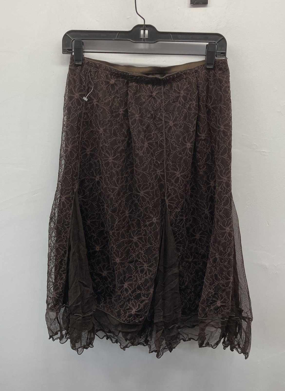 как выглядит NWT Max Studio Womens Coffee Brown Y2K Floral Lace Mesh Midi Skirt Size M фото