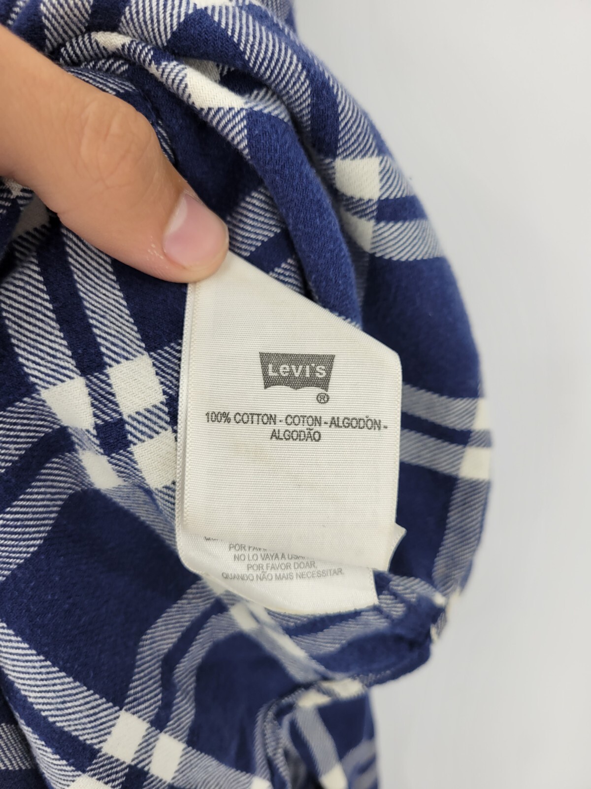 как выглядит Levis Shirt Mens Large Blue White Plaid Pearl Snap Western Long Sleeve Cowboy фото