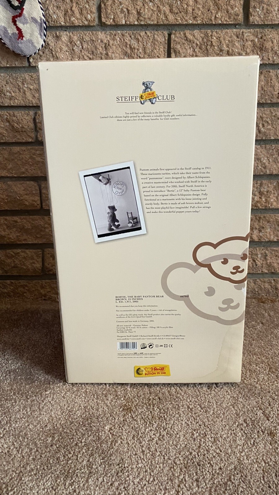 как выглядит Steiff 667947 - Bertie, The Baby Pantom Bear Marionette 2005 - New in Box w/ COA фото