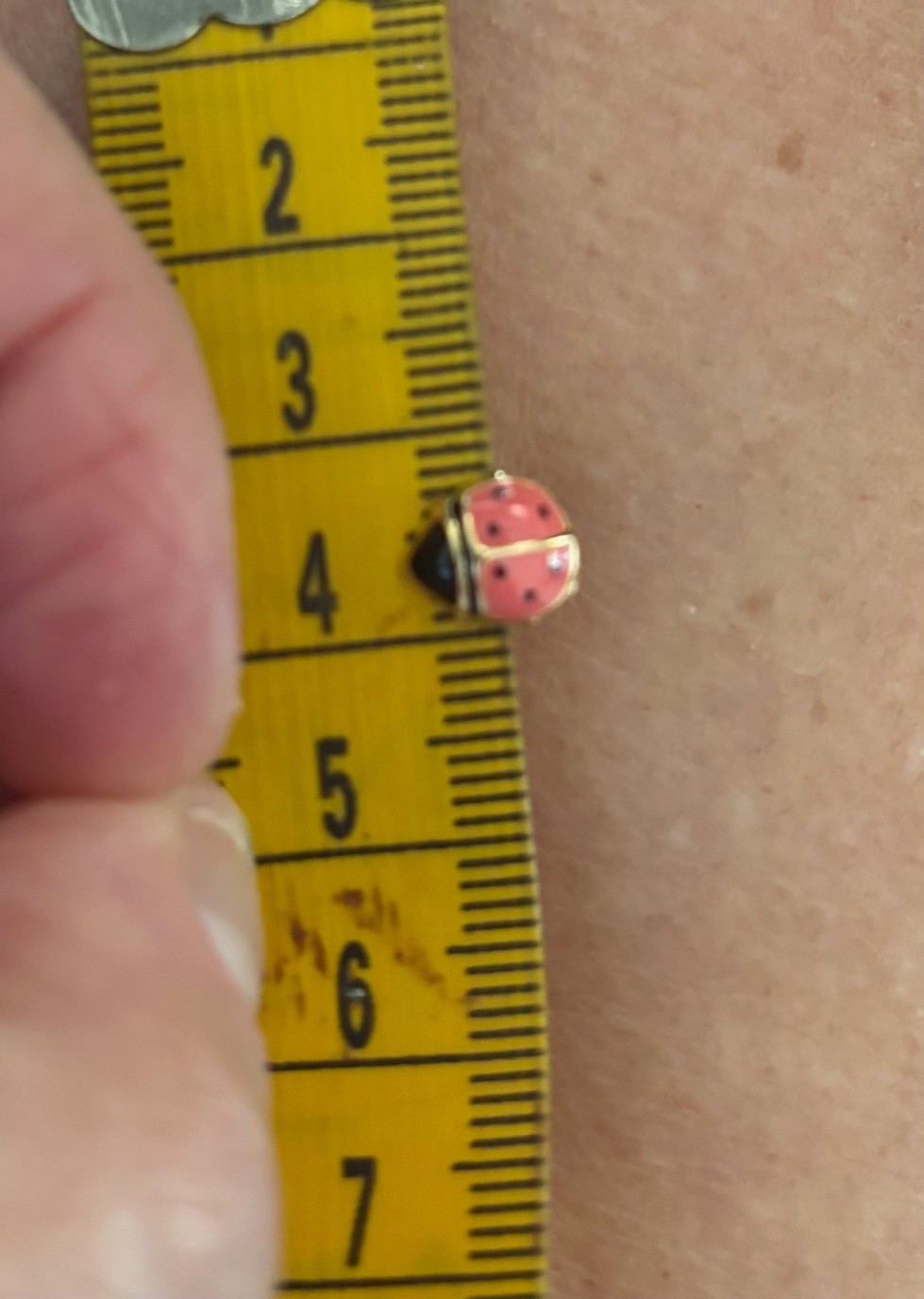 как выглядит 4k yellow gold pink enamel lady bug stud earrings фото
