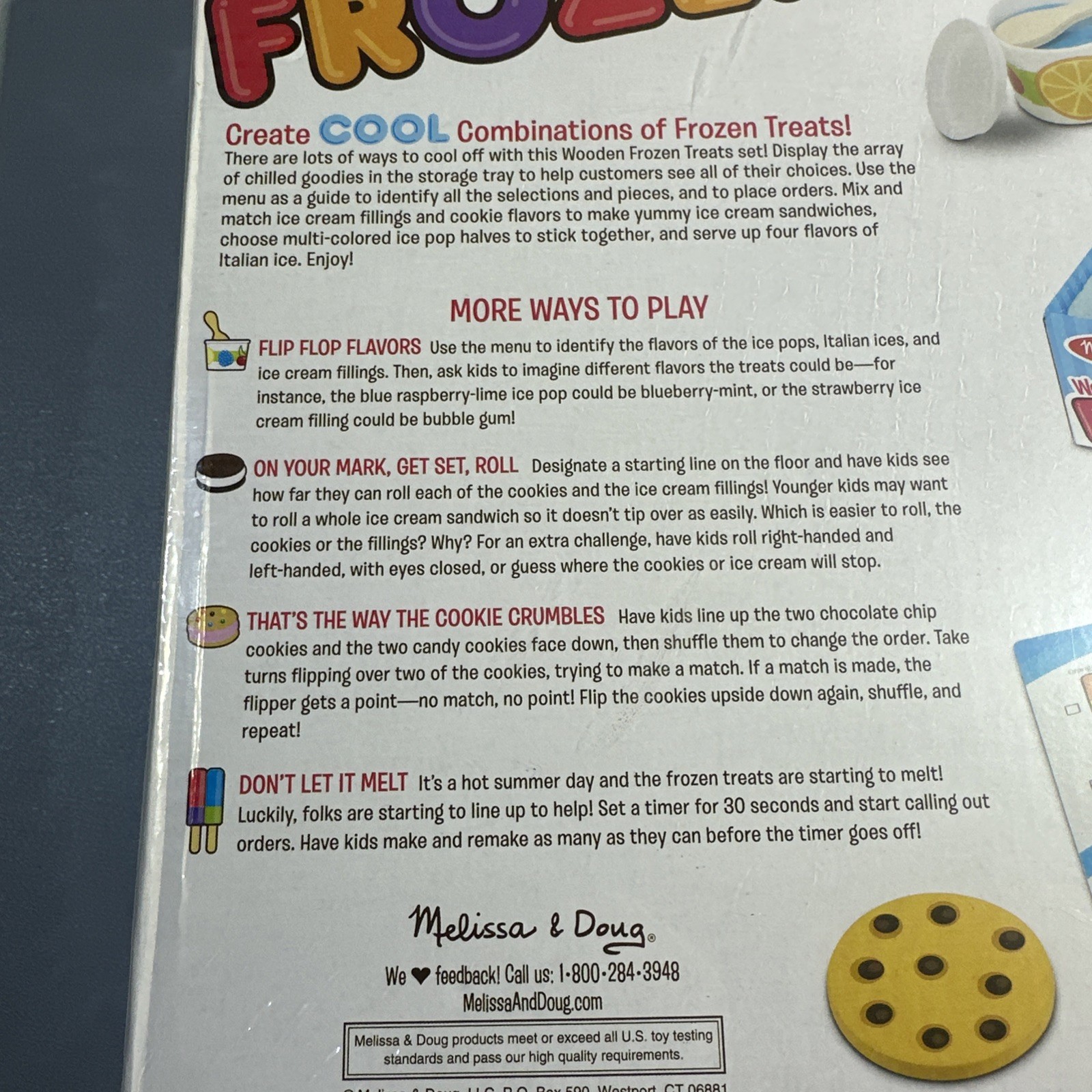 Melissa Doug Wooden Frozen Treats Ice Cream Play Set 24 pcs - Play Food NIB