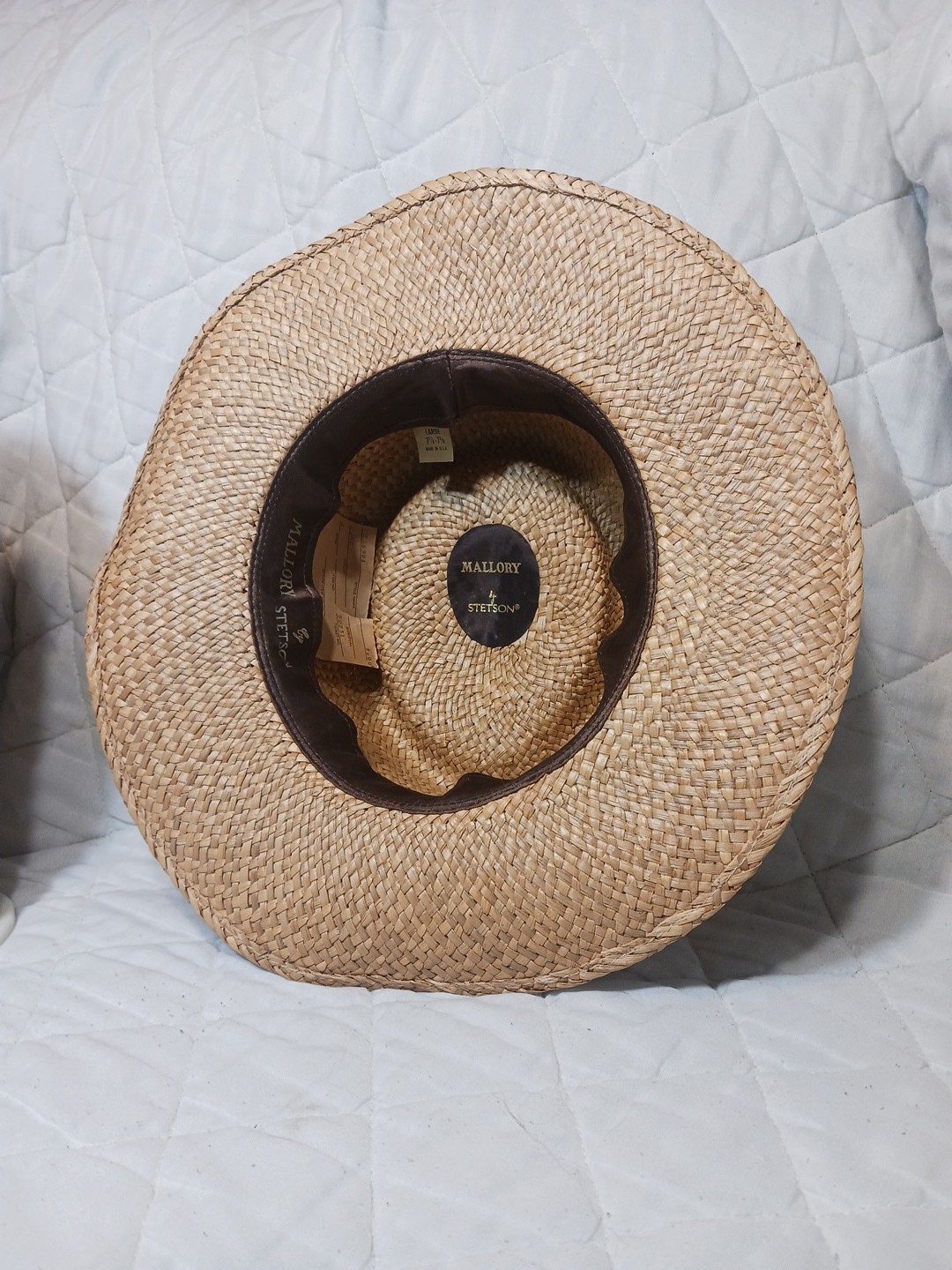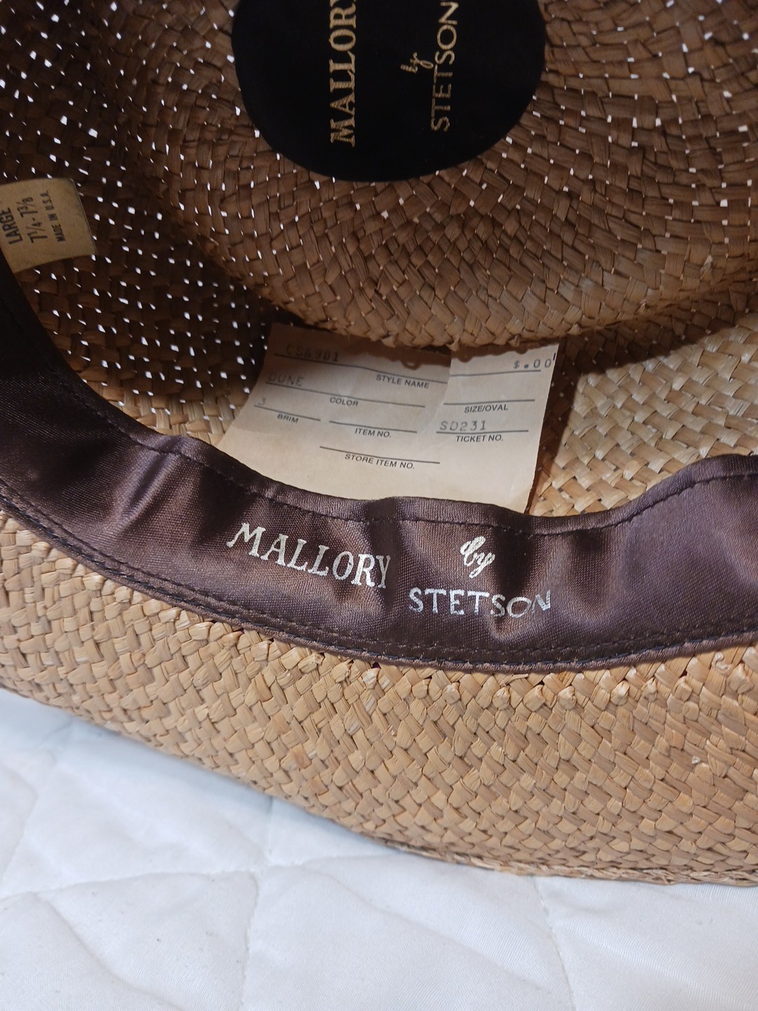Vintage Mallory By Stetson Straw Panama Hat Size 7 1/4 - 7 3/8 w/ Paper Tag
