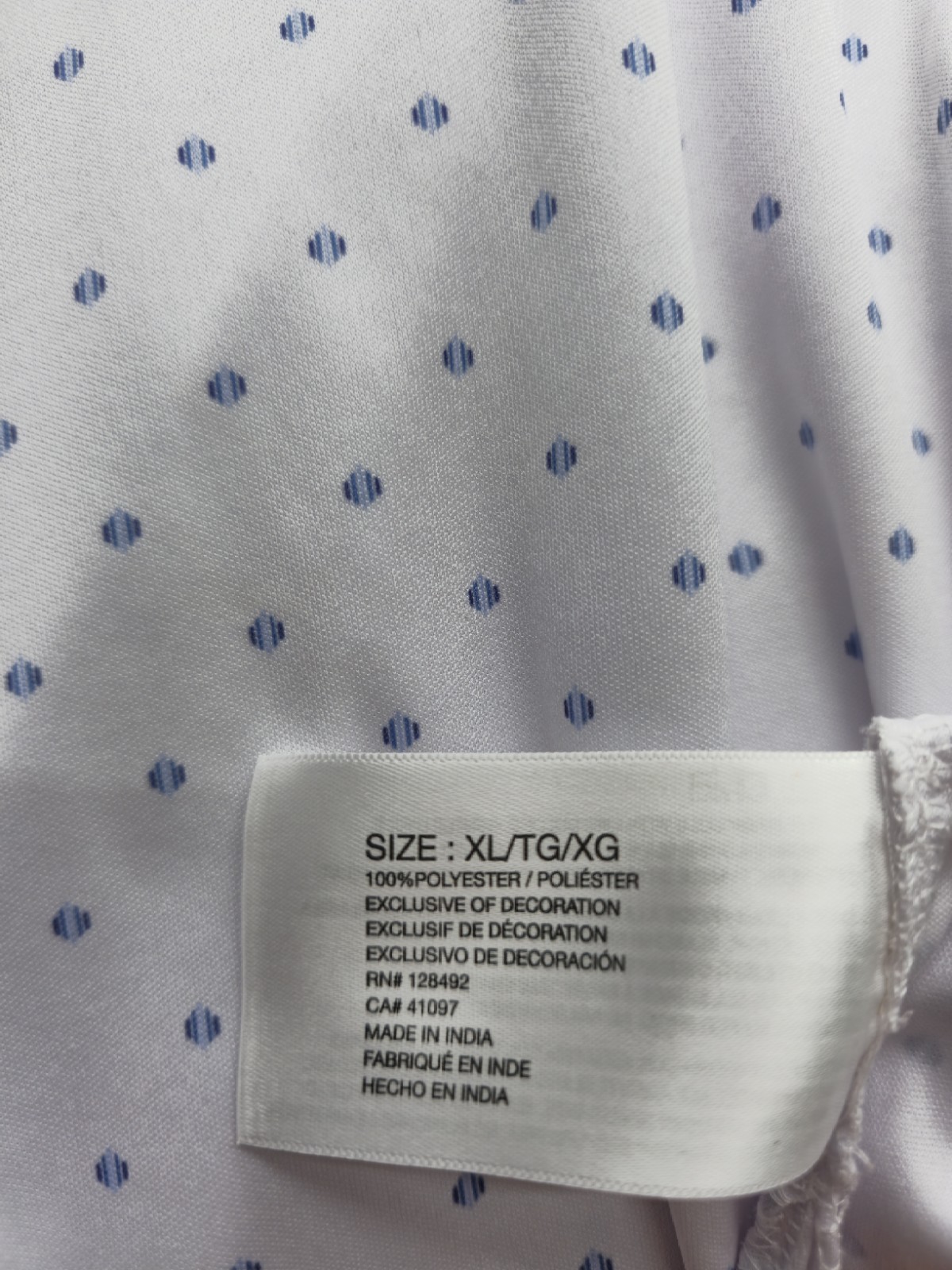как выглядит NWOT Greg Norman Play Dry Mens Golf Shirt Size XL White W/Blue Geometric Pattern фото