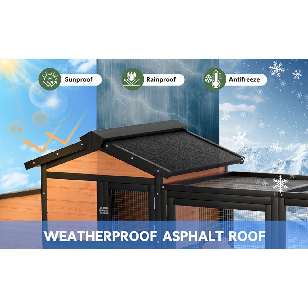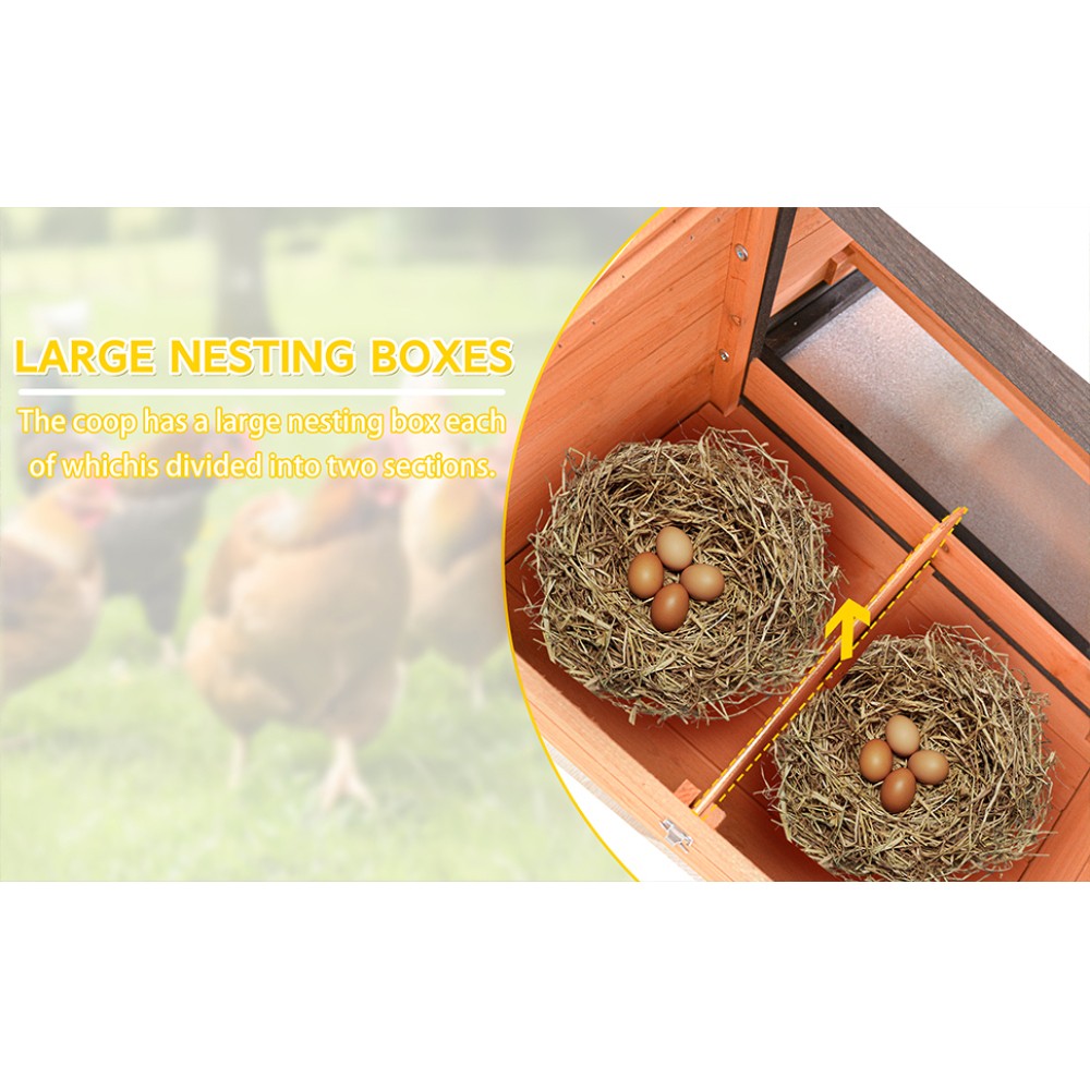 Chicken Coop, Large Wooden Chicken House with Run, Wheels, Roof