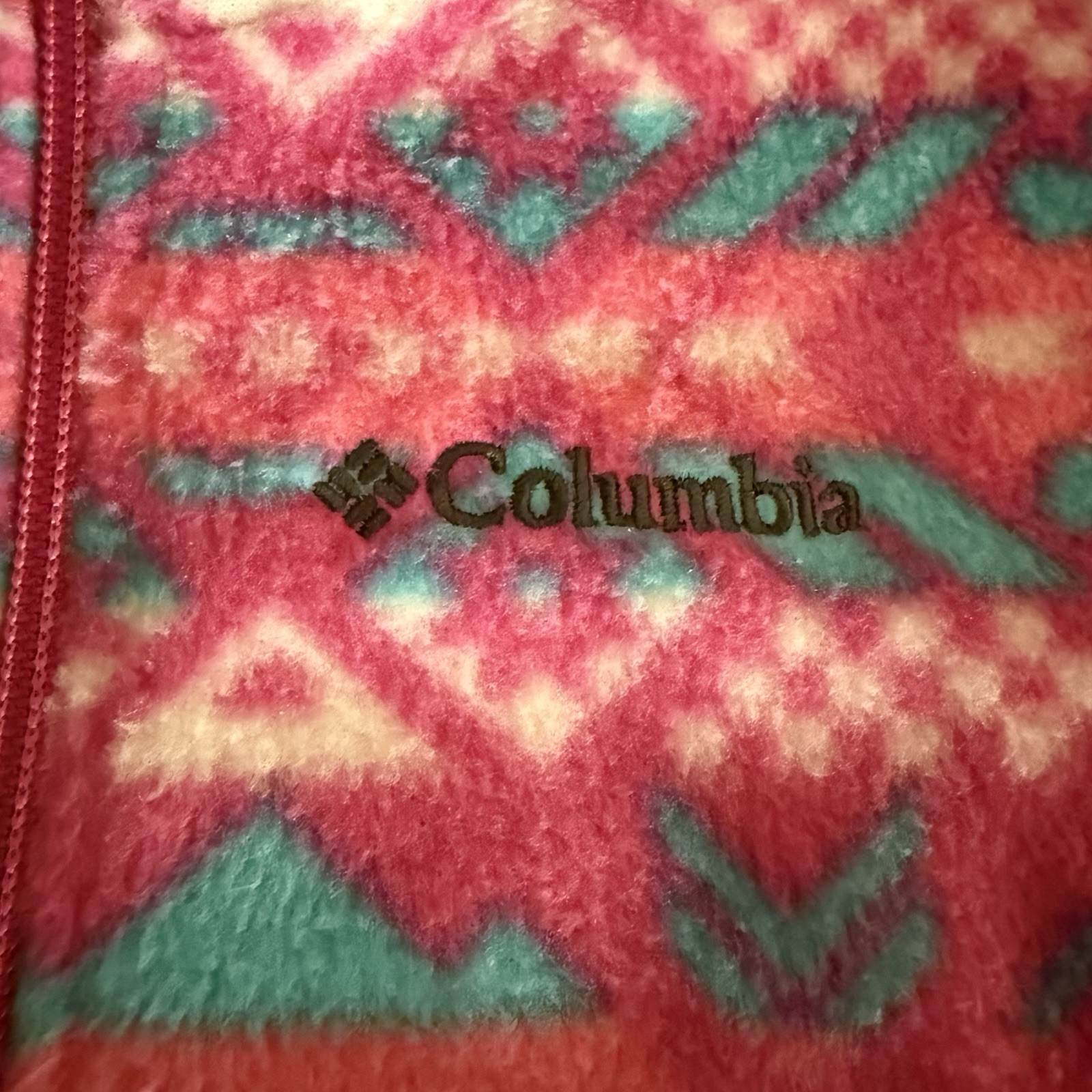 как выглядит Columbia Girls Jacket Youth XS Benton Springs Fleece 1/2 Zip-Up Pink Blue White фото