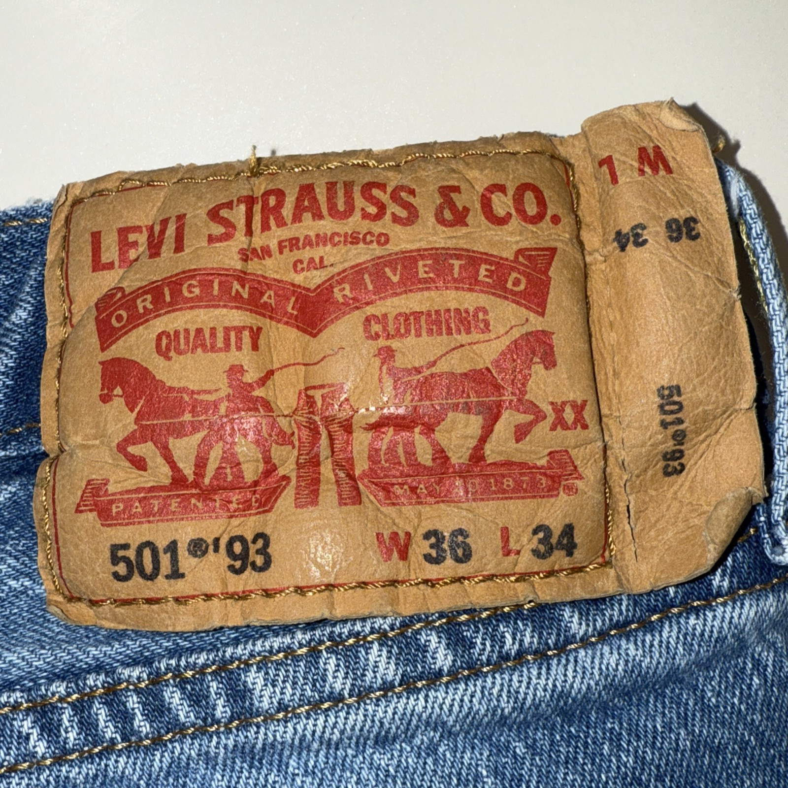 как выглядит Levis 501 93 Jeans Mens 36x34 Fit 34x32 Blue Straight Leg Button Fly фото