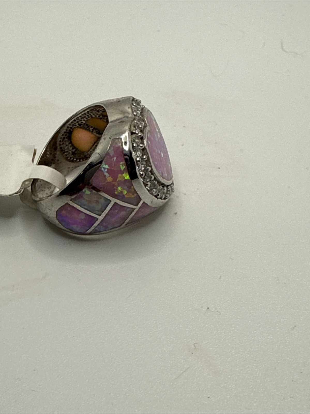 как выглядит Artisan Crafted Opal Ring With Interweaving Opal Sides And Heart Center, Silver фото