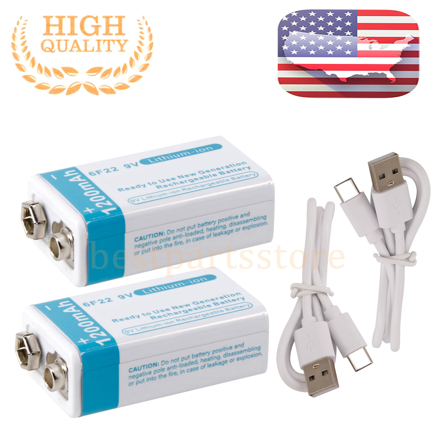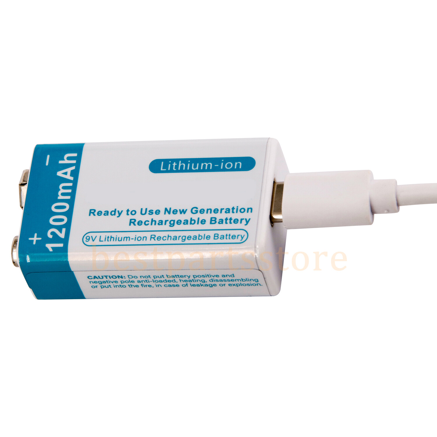 8PACK 9V 9 Volt Li-ion USB Rechargeable Batteries 1200mAh Lithium Ion Battery