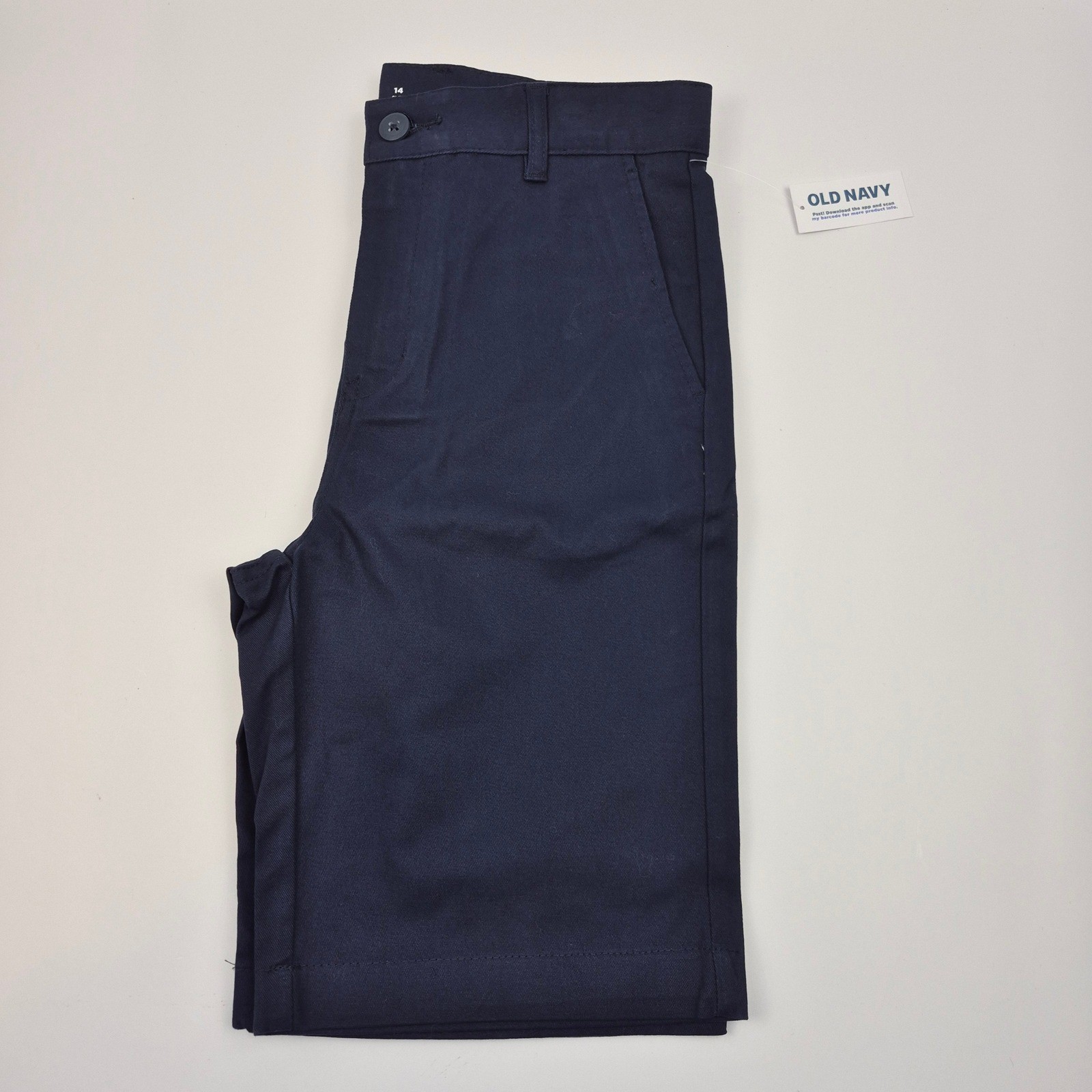 Old Navy Slim Uniform Shorts Adjustable Waist Navy Blue Twill Kids Size 14 NWT