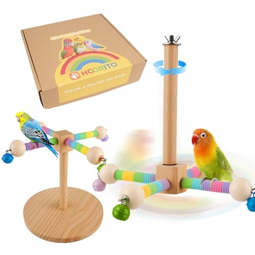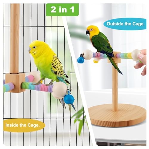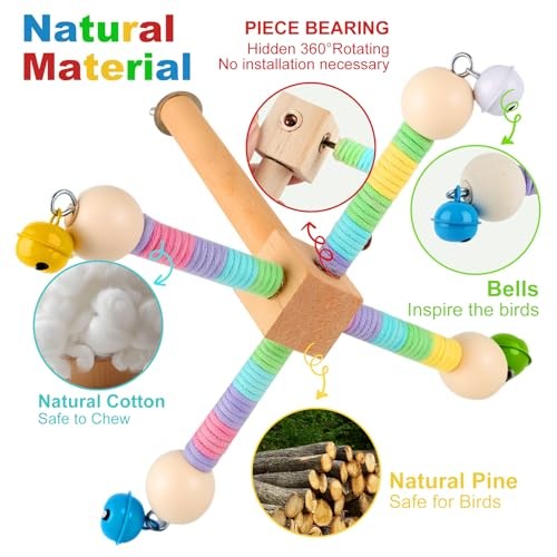 Bird Perch Toy,360 Interactive Rotating Bird Perches for Cage,2-in-1 Wooden
