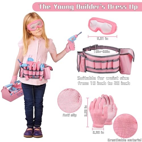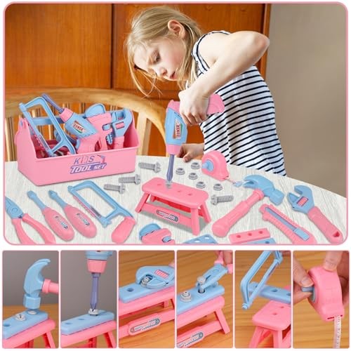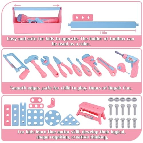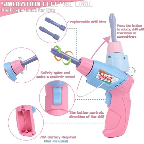 Kids Tool Set, 48PCS Toddler Tool Set with Electronic Toy Drill Kids Tape A