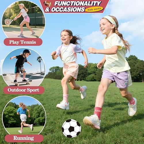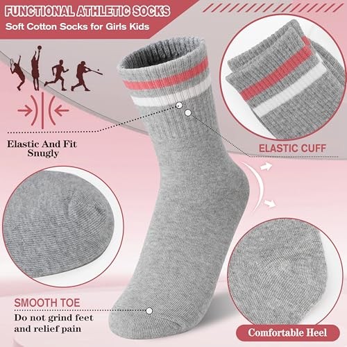 6 Pairs Girls Kids Socks Athletic Sport Basketball 5-8 Years White Pink Heart
