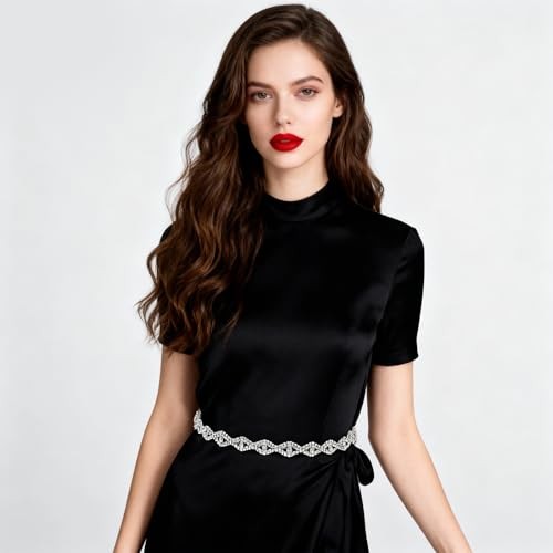 1 Pcs Silver Dress Belt, Rhinestone Chain Belt For Women, Sparkly Crystal Thin