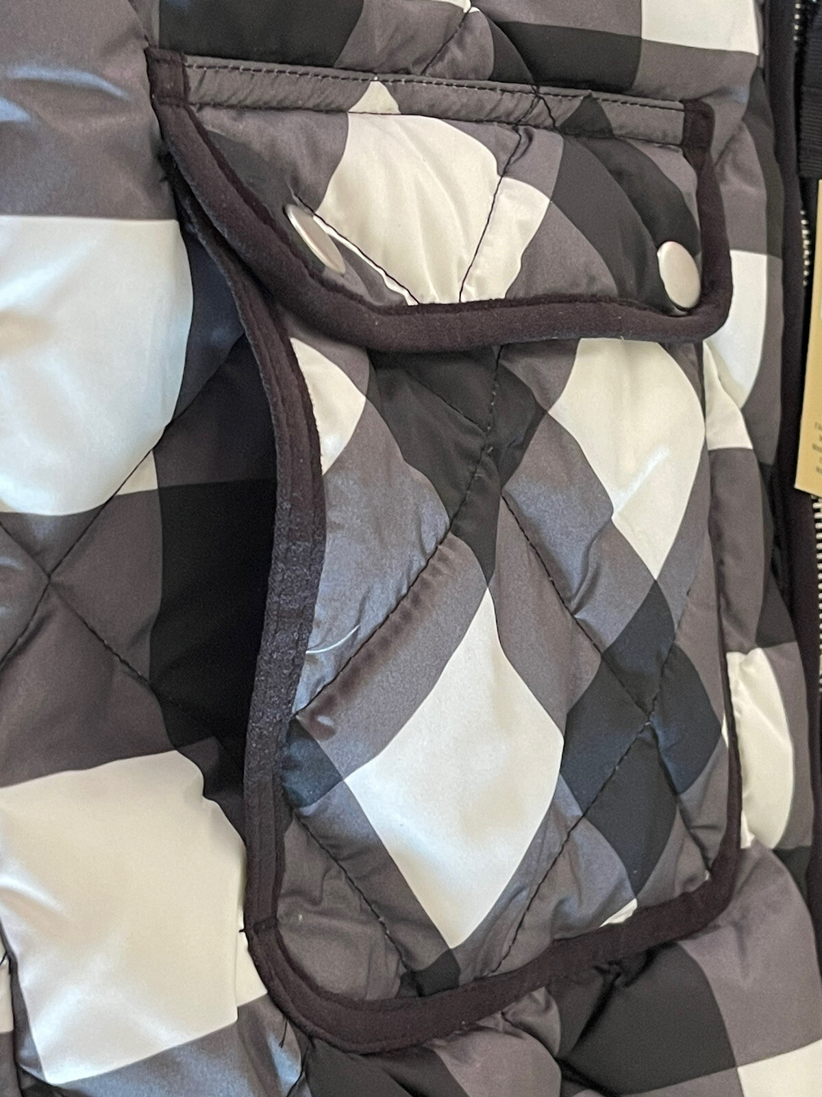 как выглядит Woolrich Down Filled Quilted Puffer Vest Women s Medium B/W Plaid NWT MSRP 55 фото