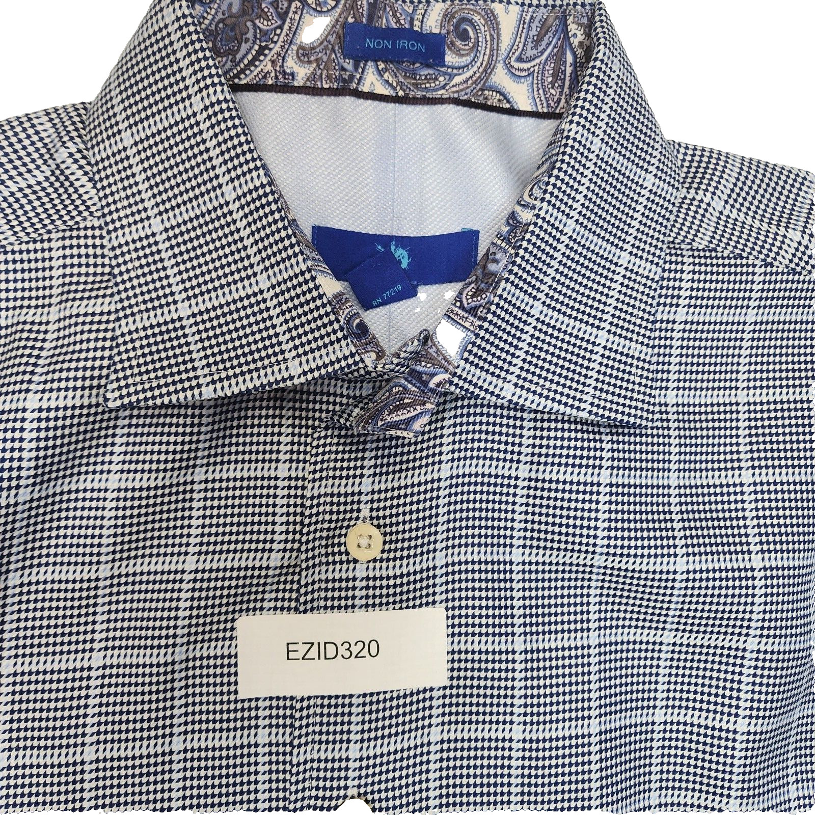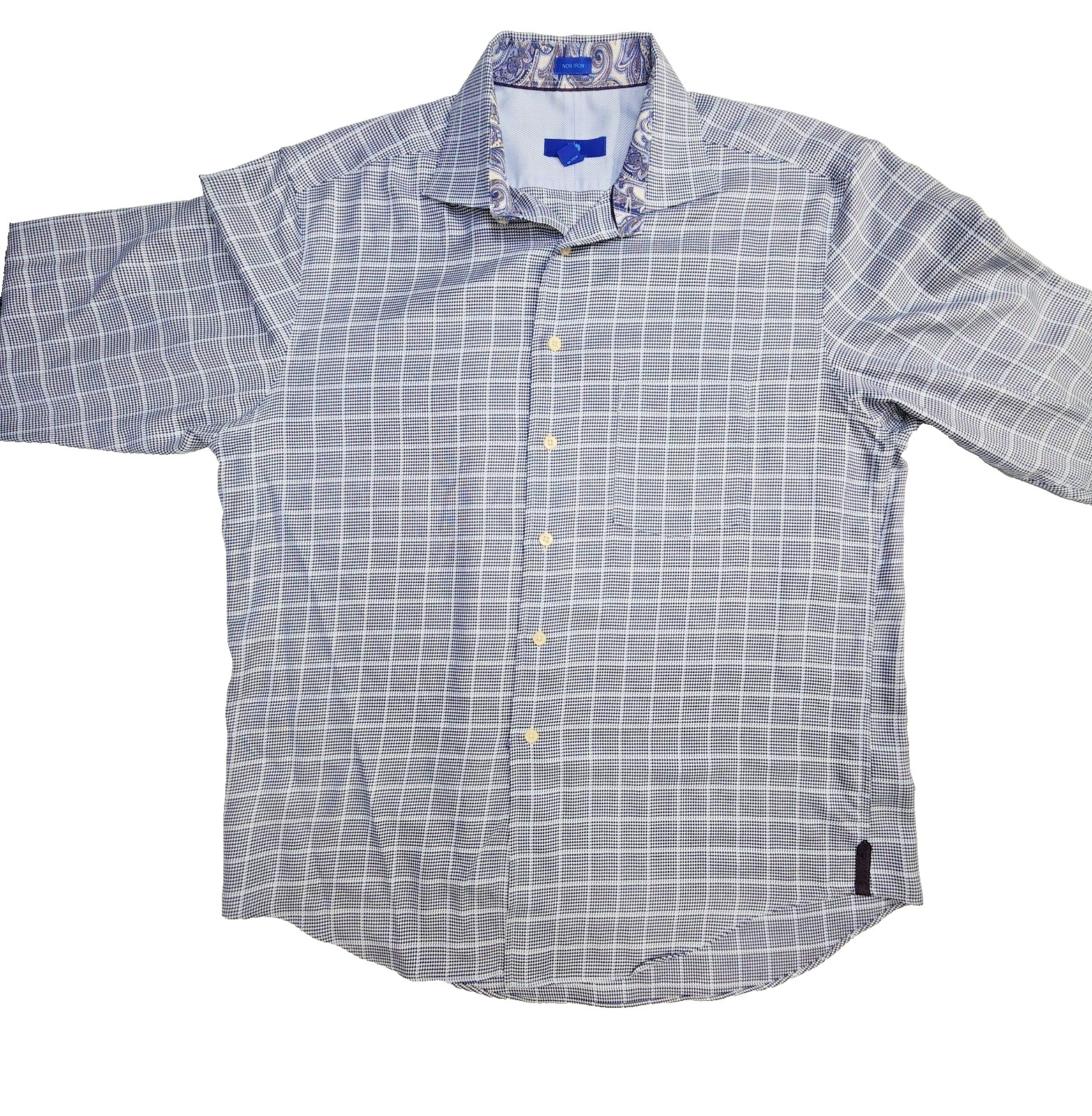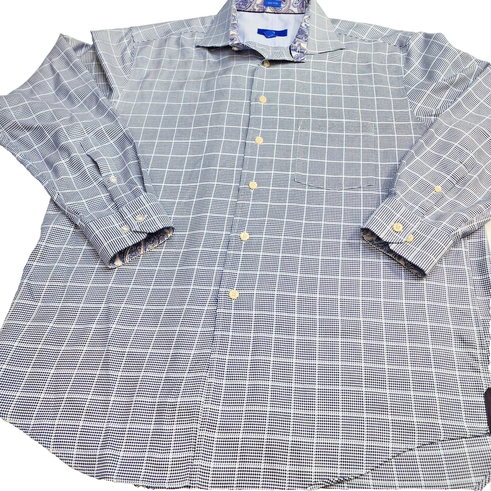 Egara Long Sleeve Flip Cuff Non-Iron Shirt Blue White Check Mens Size 17