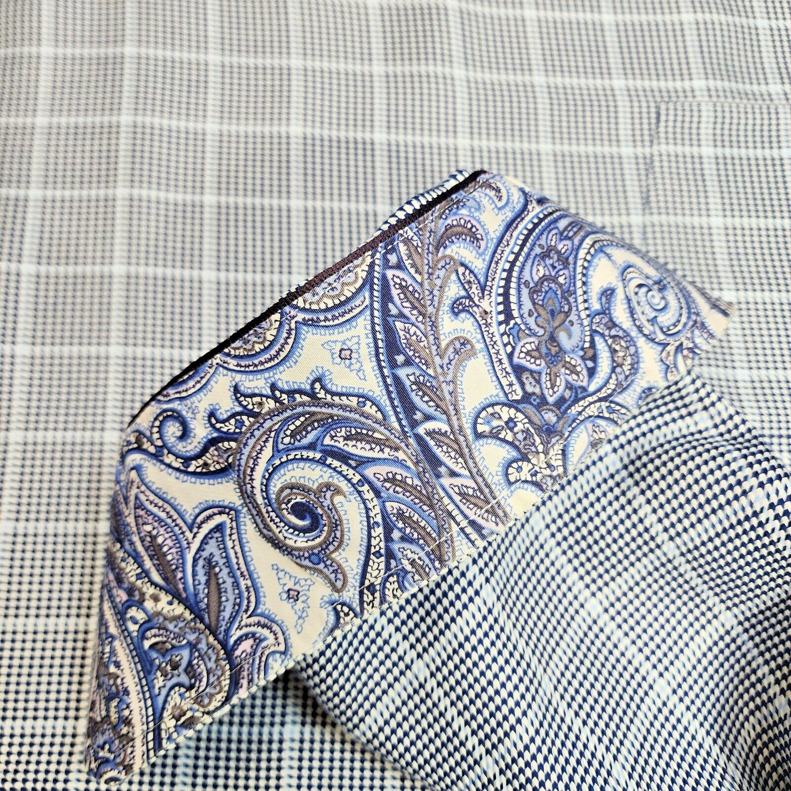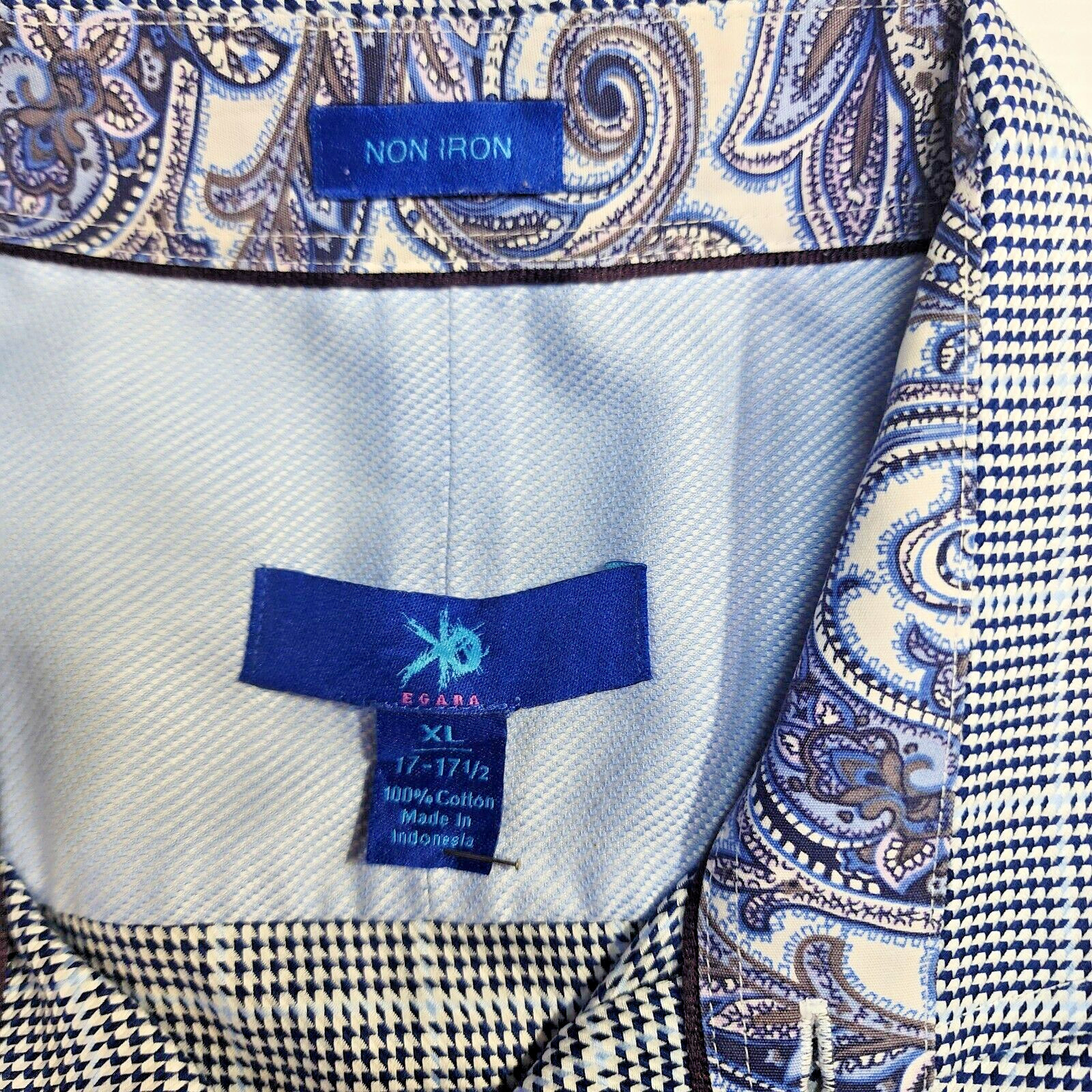 как выглядит Egara Long Sleeve Flip Cuff Non-Iron Shirt Blue White Check Mens Size 17 фото