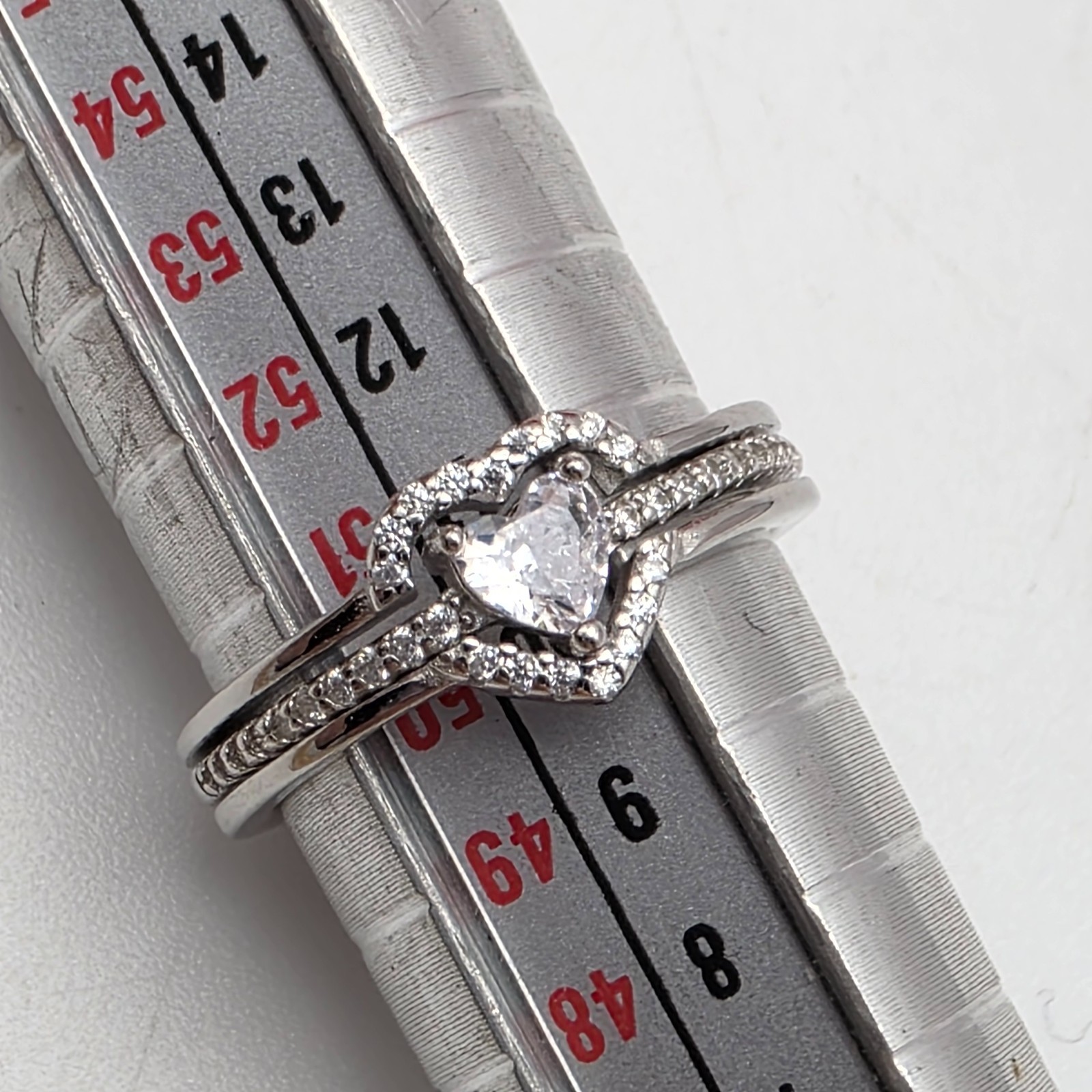 Sterling Silver Heart Ring Clear CZ Cubic Zirconia Size 5.5 3mm Band