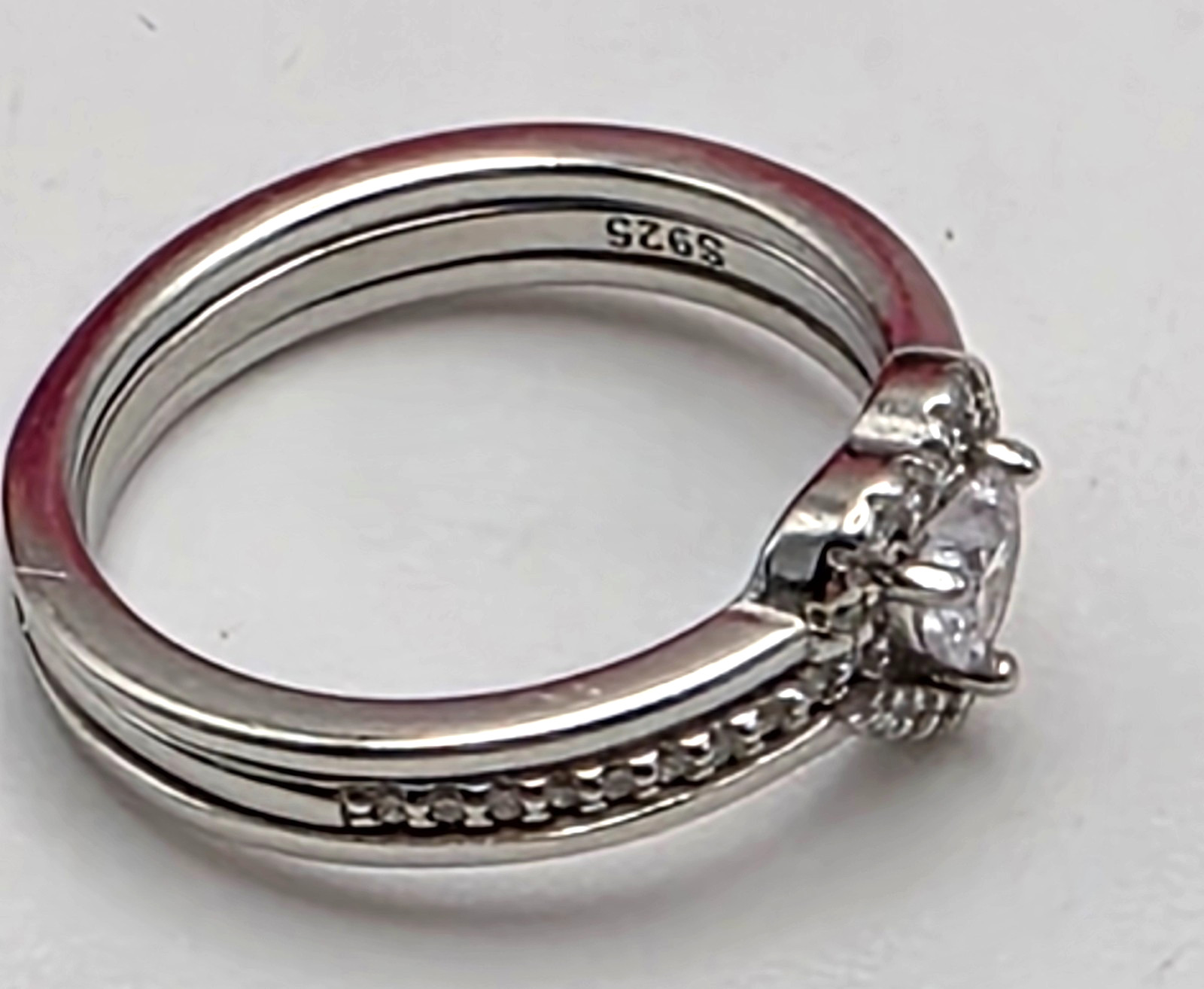 как выглядит Sterling Silver Heart Ring Clear CZ Cubic Zirconia Size 5.5 3mm Band фото