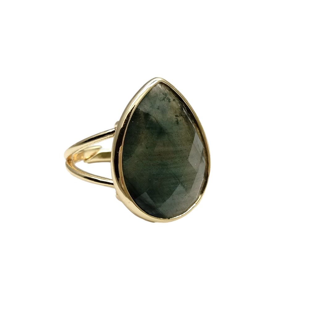 Natural Labradorite Pear Shape Gemstone Ring 18k Gold Plated Jewelry Gift Ring