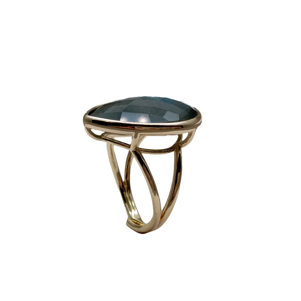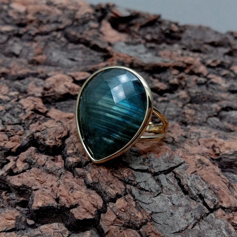 как выглядит Natural Labradorite Pear Shape Gemstone Ring 18k Gold Plated Jewelry Gift Ring фото