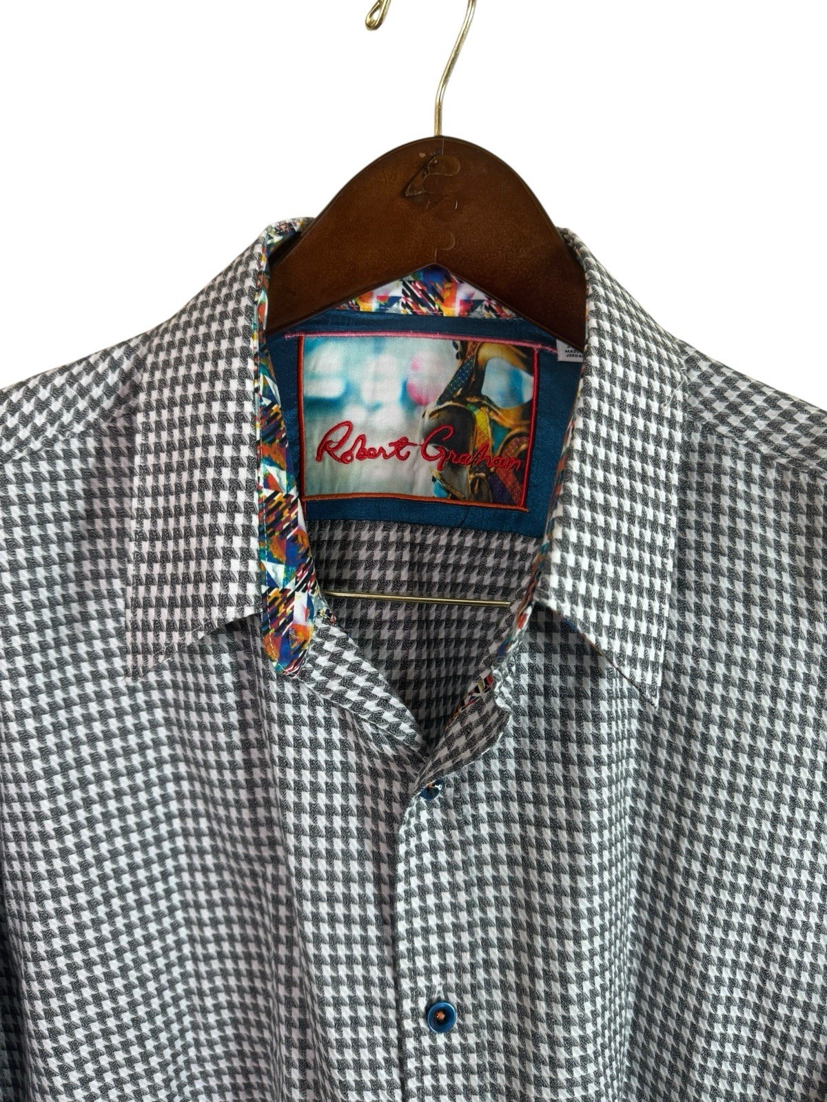 Robert Graham Flip Cuff Long sleeve Gray Pattern Button down Shirt Mens XL