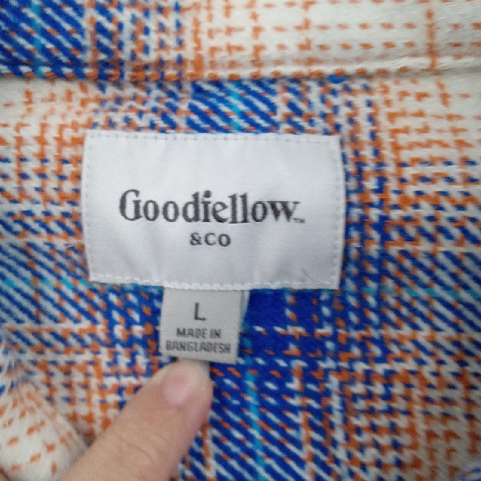 как выглядит Goodfellow Shirt Mens Large Blue Orange Plaid Flannel Button Down Casual фото