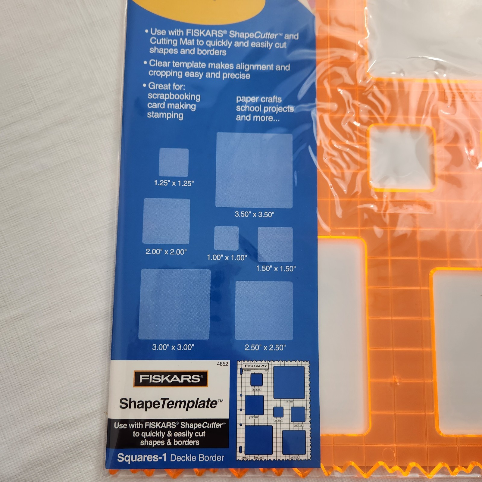 как выглядит Fiskars Shape Template Plastic Orange Squares - 1 Deckle Border фото