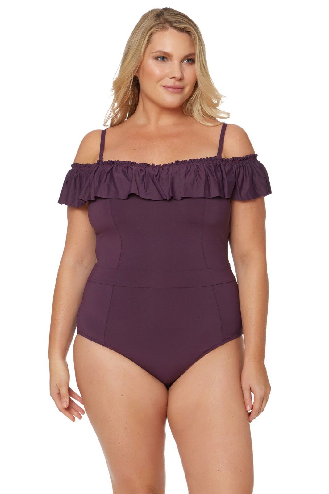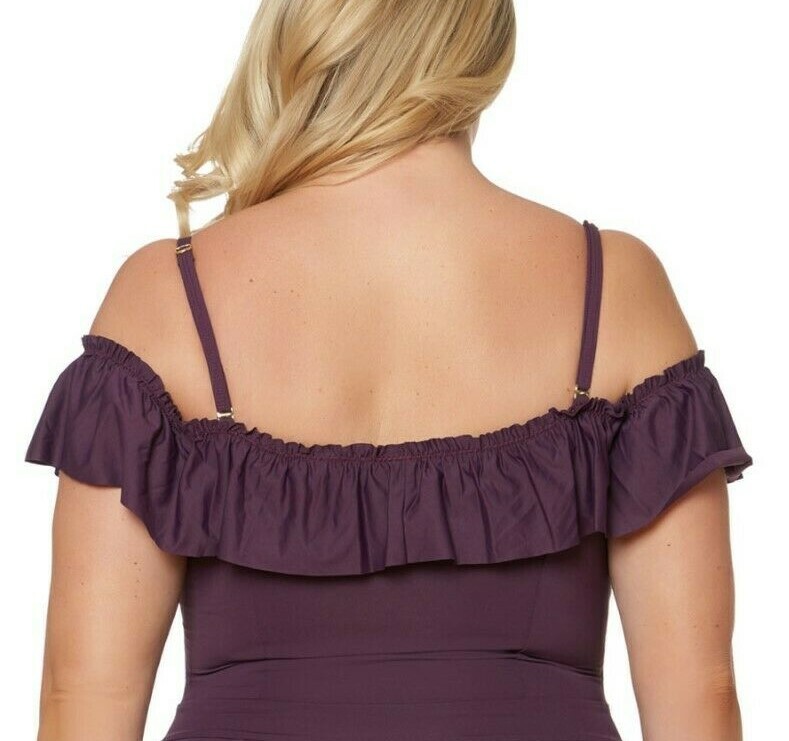как выглядит Bleu Rod Beattie Ruffled Off the Shoulder One PC Plus Size 16W Swimsuit NWT 145 фото