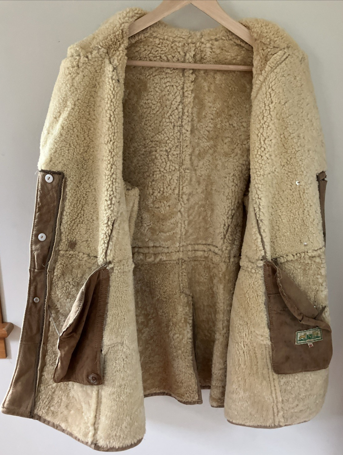 как выглядит Vtg Genuine Shearling Sheepskin Suede Leather Rancher Marlboro Jacket Coat 46 M фото