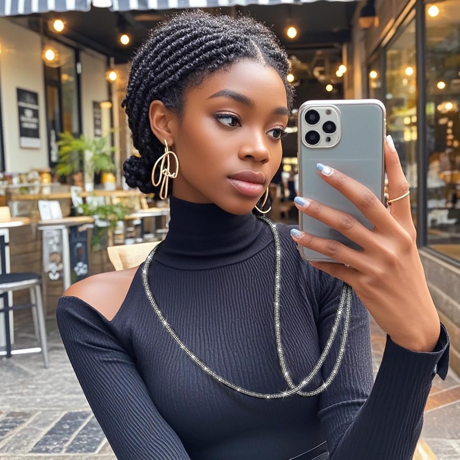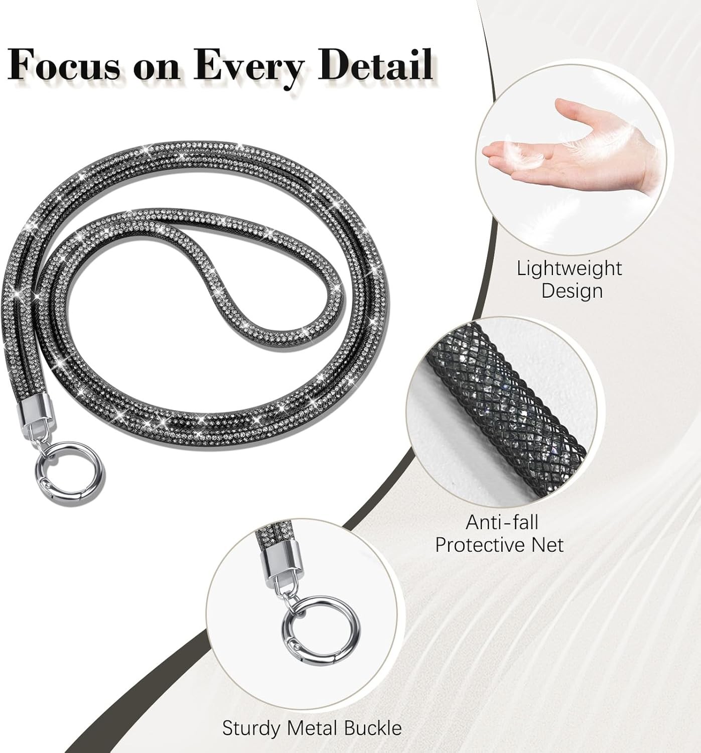 TiMOVO Universal Phone Lanyard Crossbody, Rhinestone Cell Chain Black