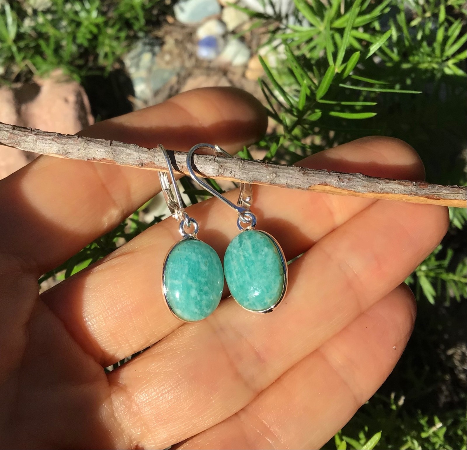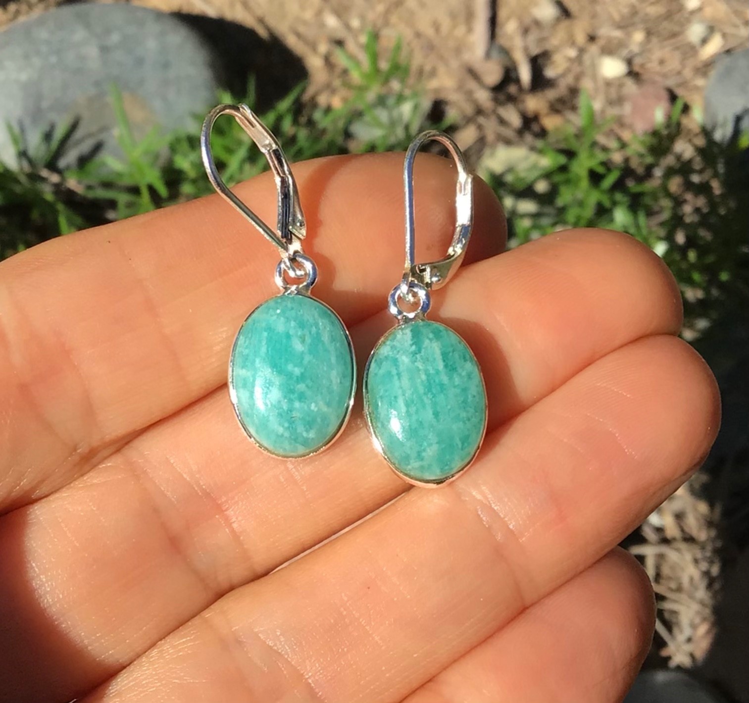 Sterling Silver Amazonite gemstone sundance charm Artisan jewelry Earrings