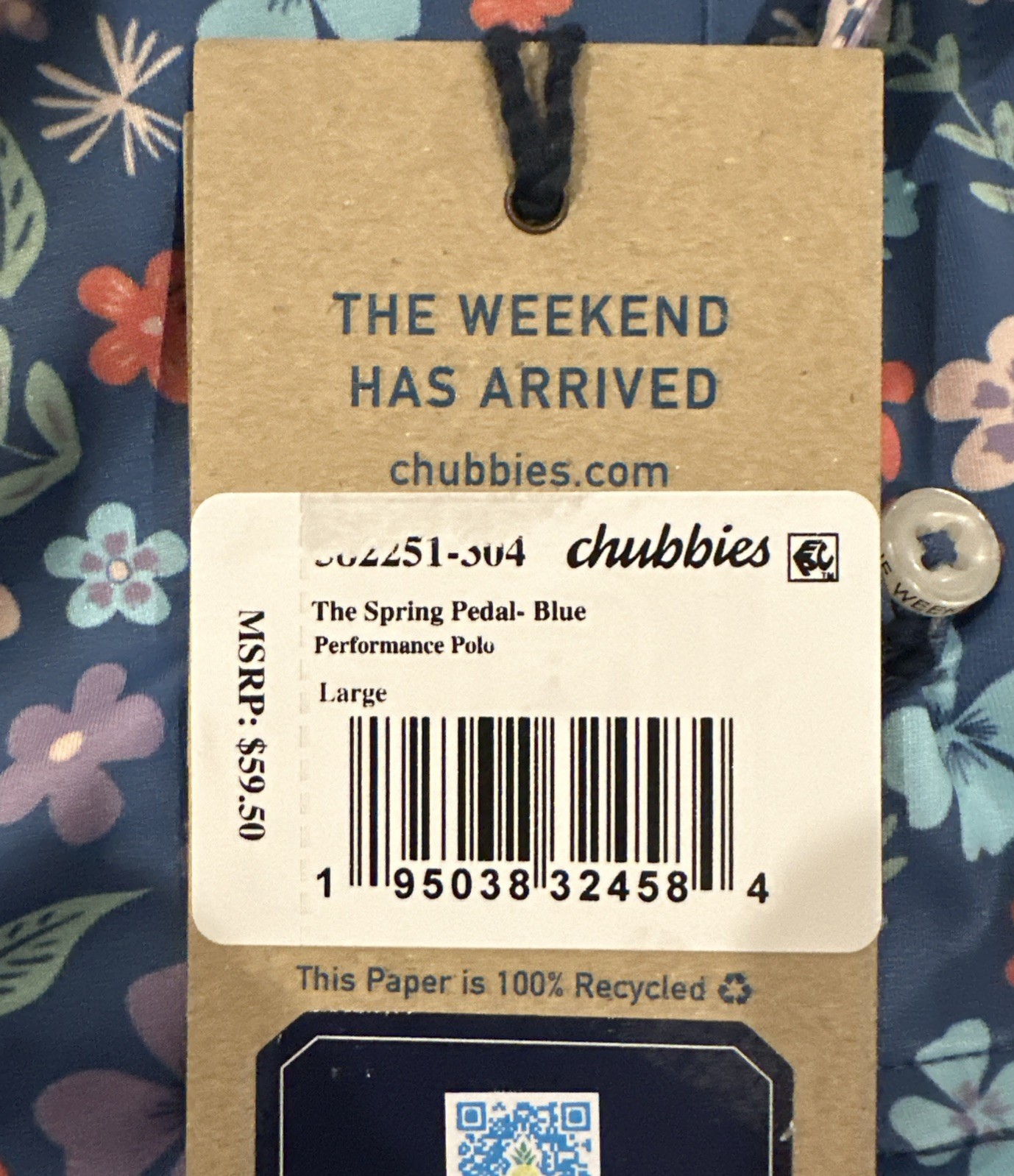 Chubbies Men s The Spring Pedal Blue Performance Polo, Large, New