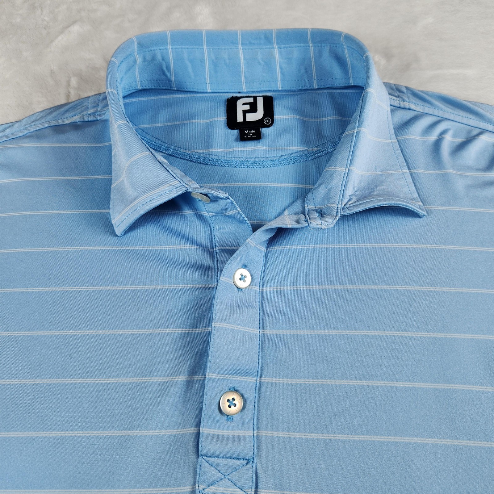 FootJoy Polo Shirt Mens 2XL Blue Stripe Golf Performance Stretch Short Sleeve