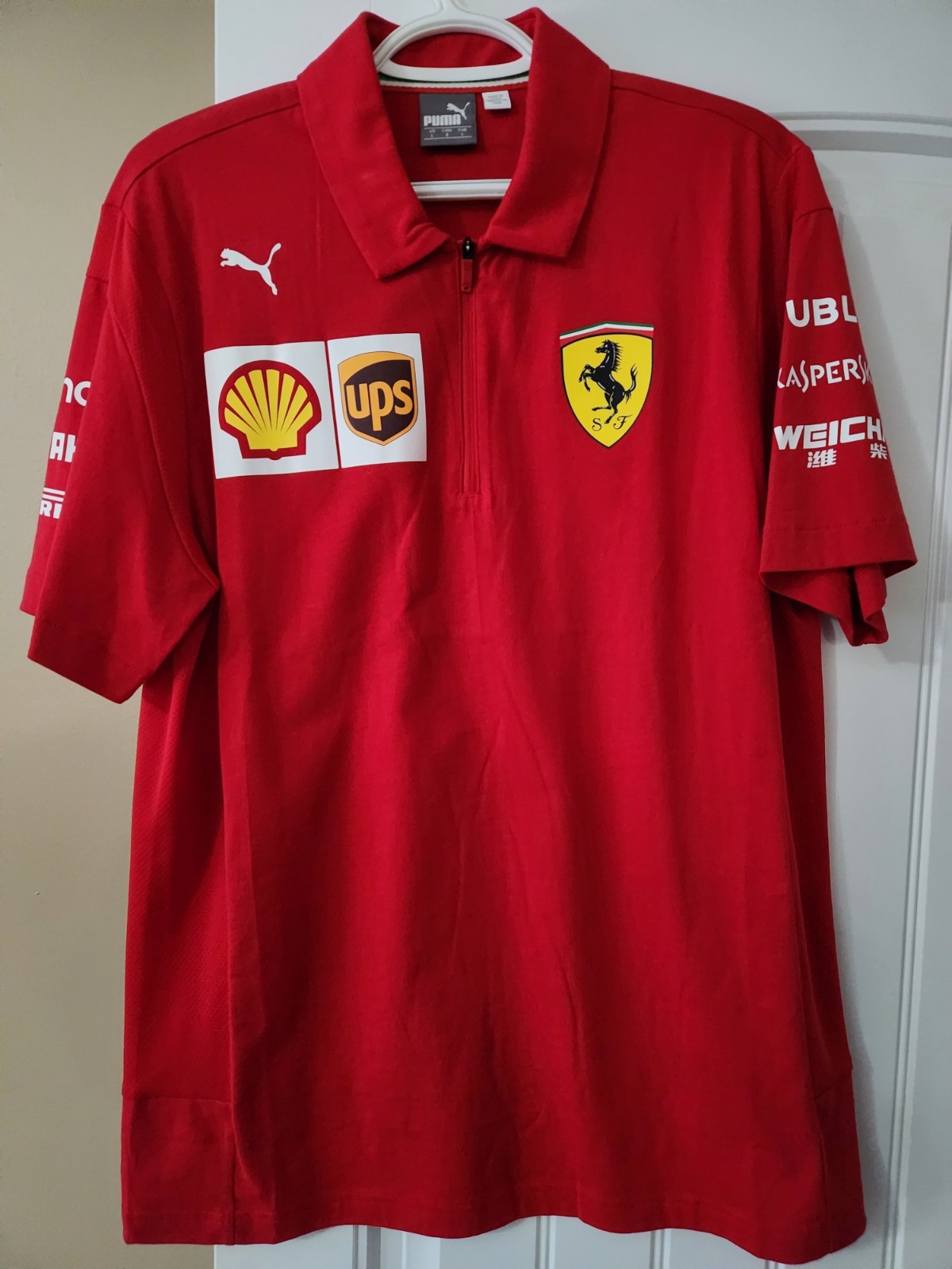 как выглядит Ferrari Puma NWOT Mens Large Polo Red UPS Vettel Leclerc F1 фото