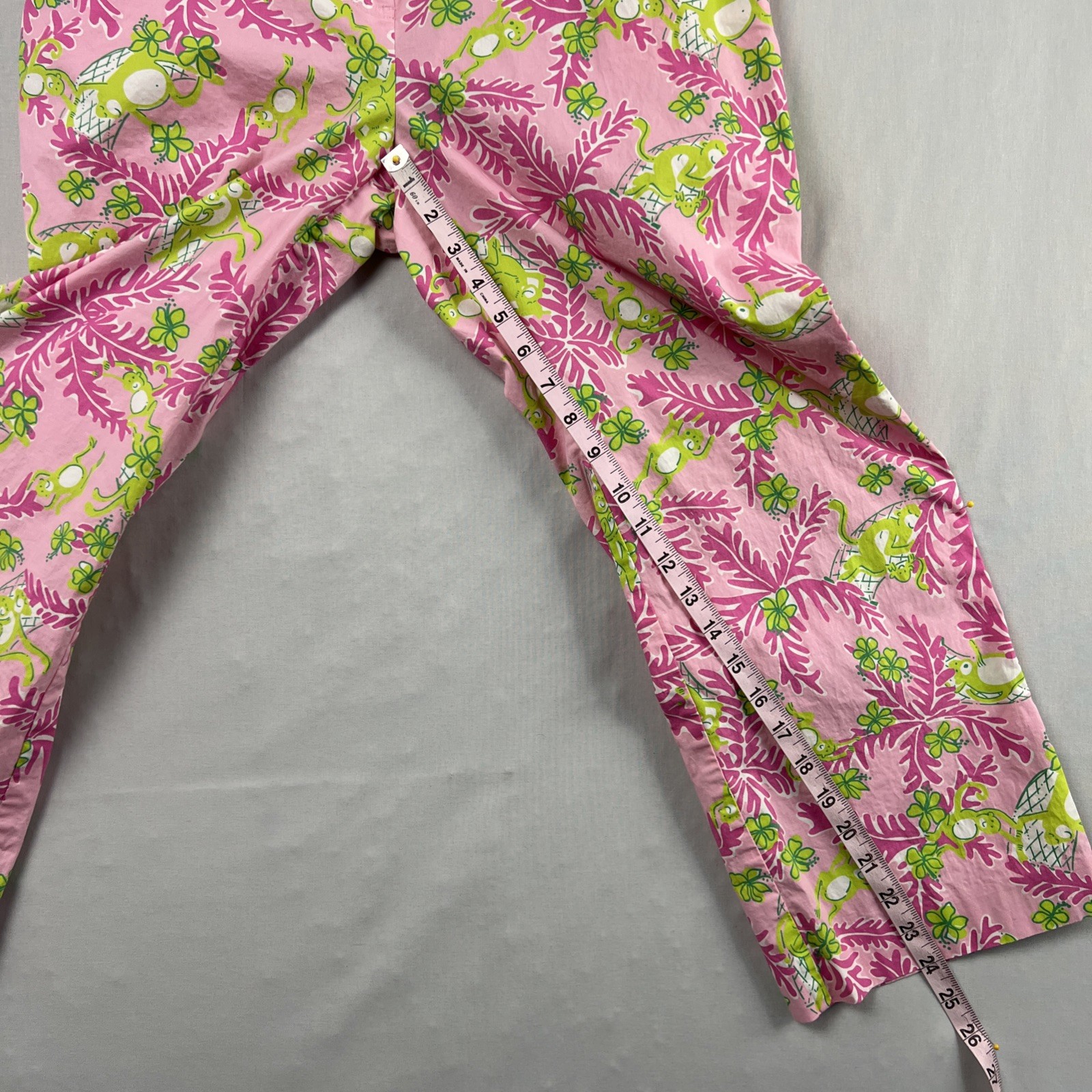 как выглядит Vintage Lilly Pulitzer Cropped Pants Womens 10 Monkey Floral Pink Green Preppy фото