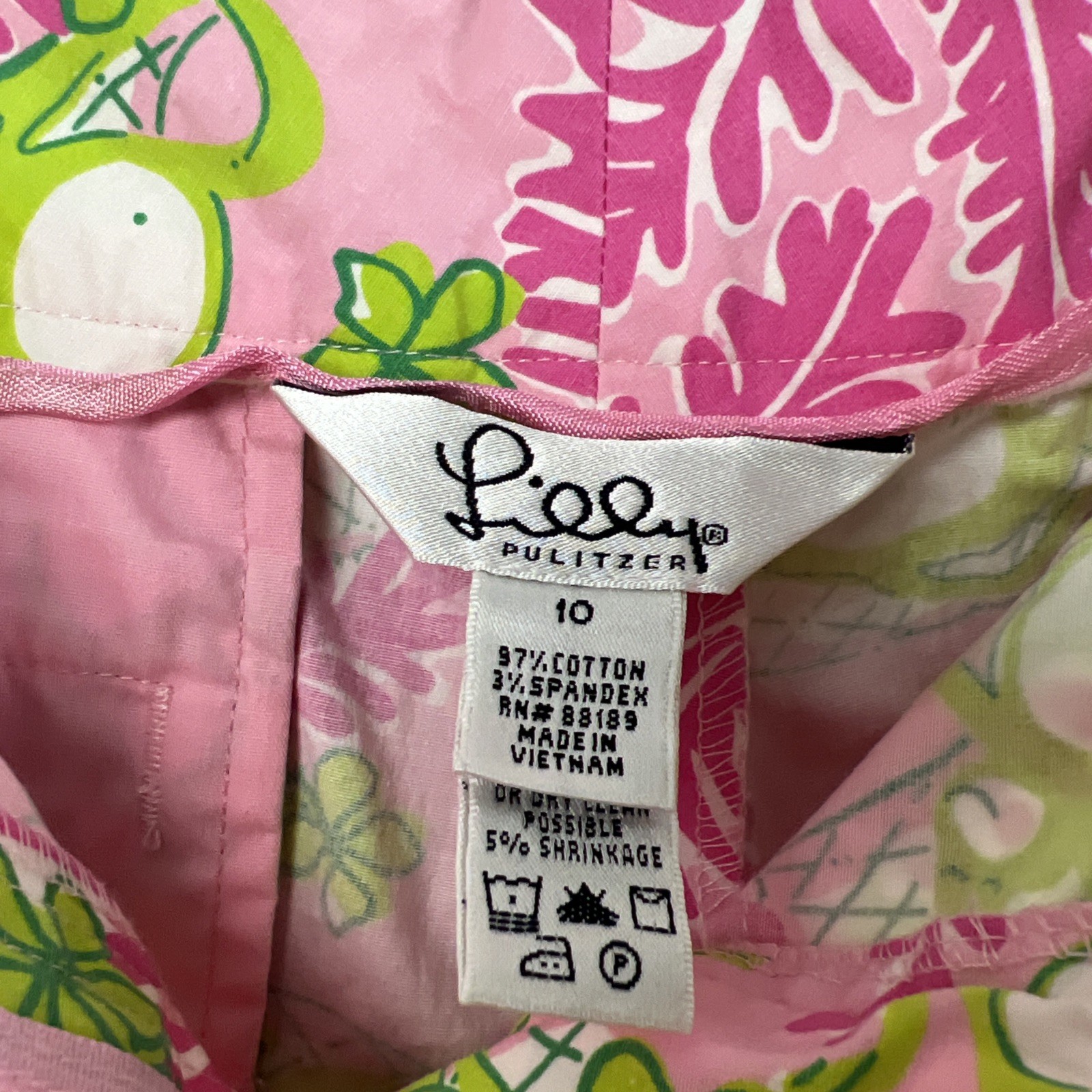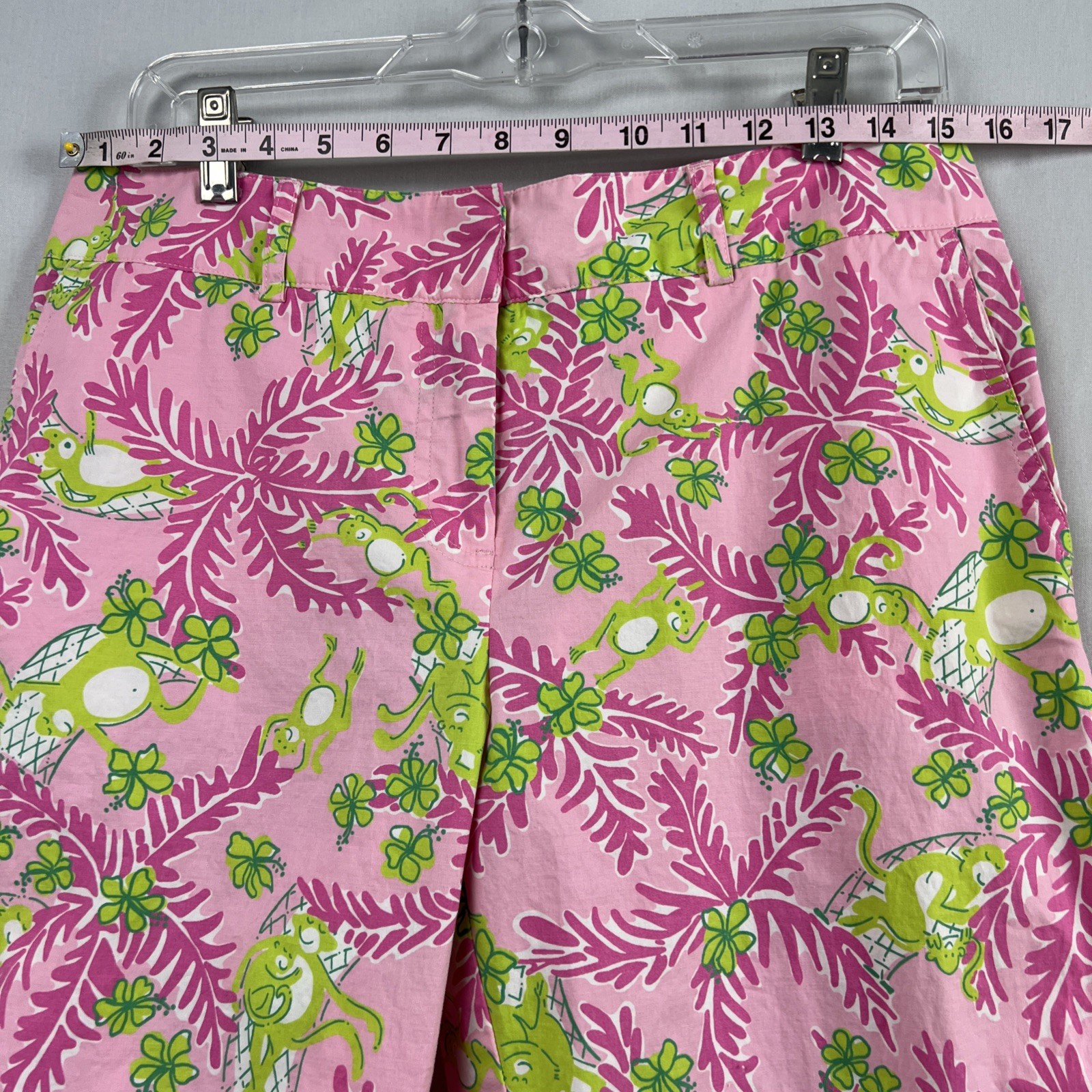 Vintage Lilly Pulitzer Cropped Pants Womens 10 Monkey Floral Pink Green Preppy