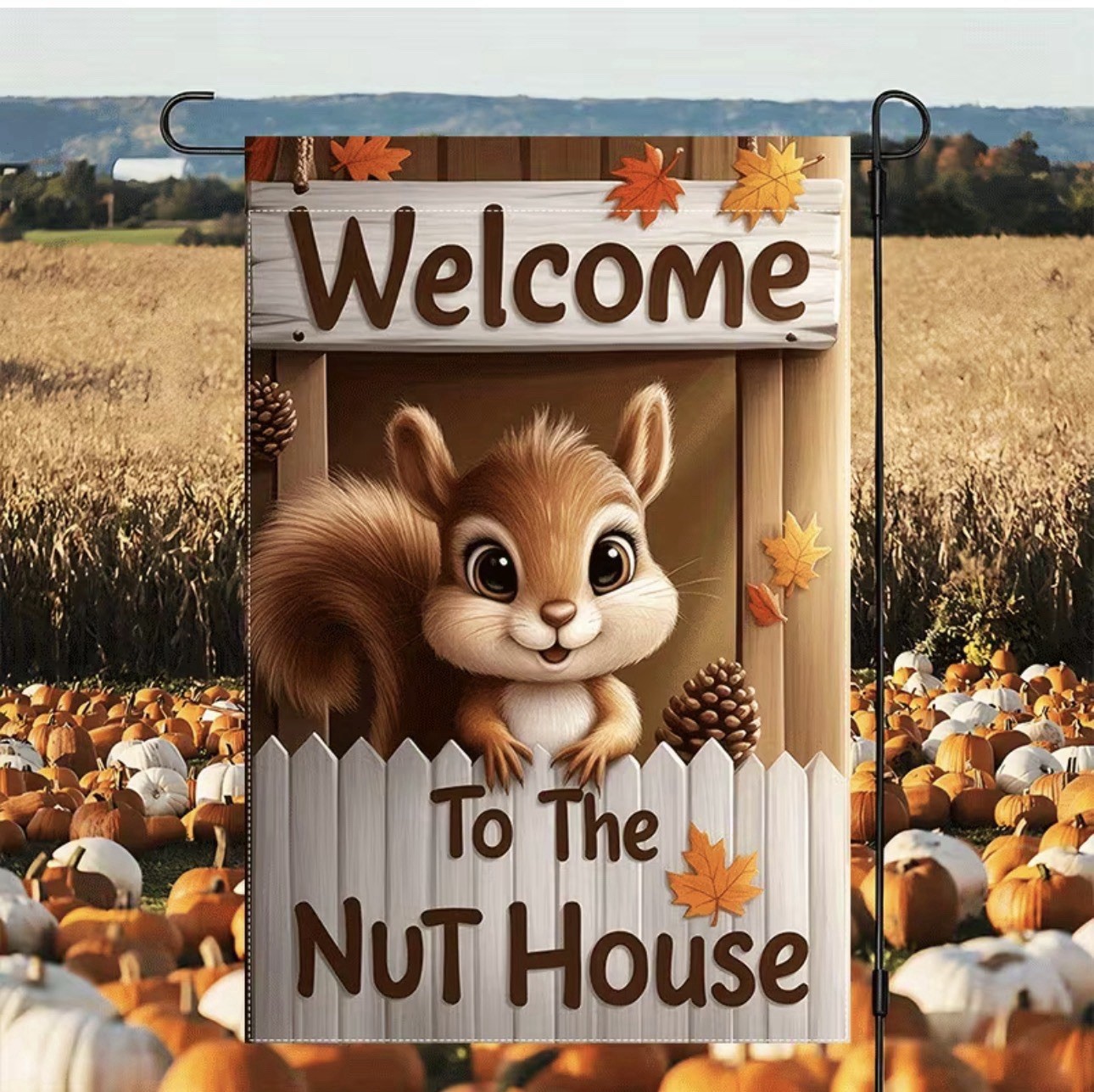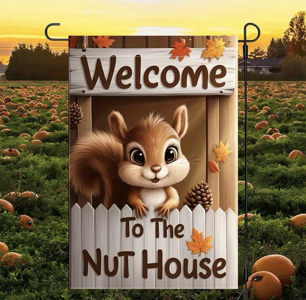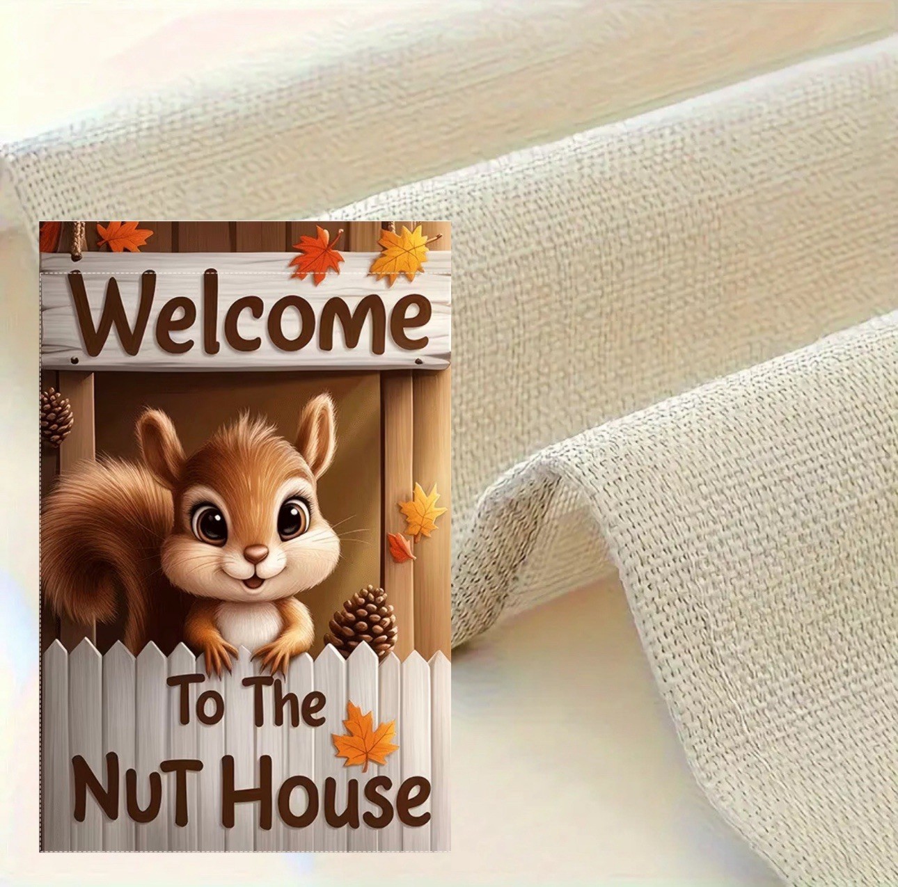 Garden Flag, 12 X 18 , Welcome To The Nuthouse, Squirrel, Burlap Double-sided