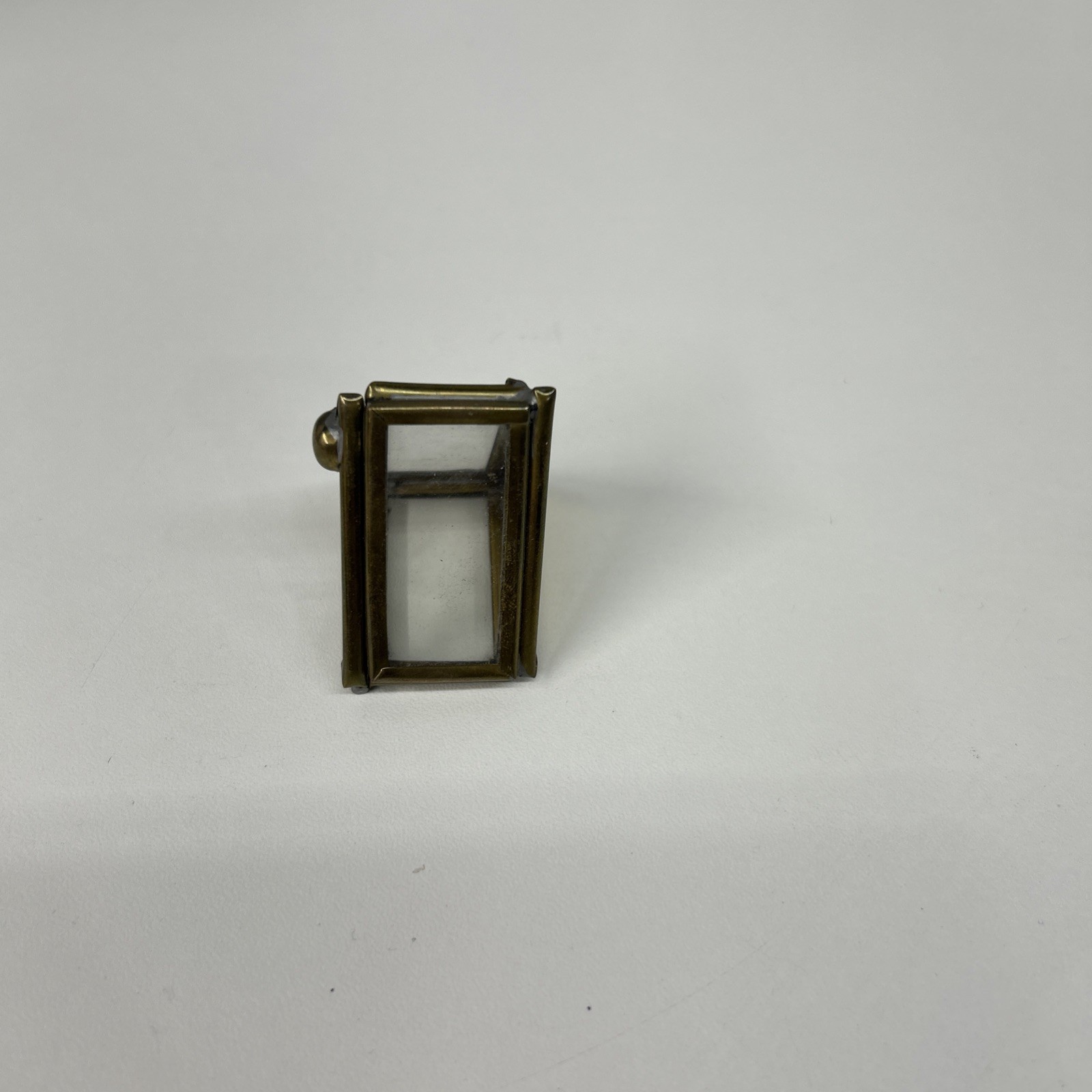 как выглядит Vtg Triangle Brass Etched Flower Glass Dome Trinket Box Hinged Lid фото