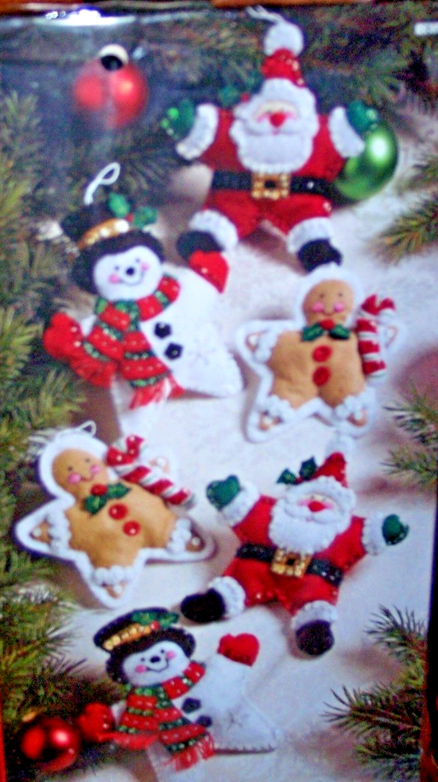 Bucilla Santa CHRISTMAS STARS Felt Christmas Ornament Kit Set-6 OOP VERY RARE