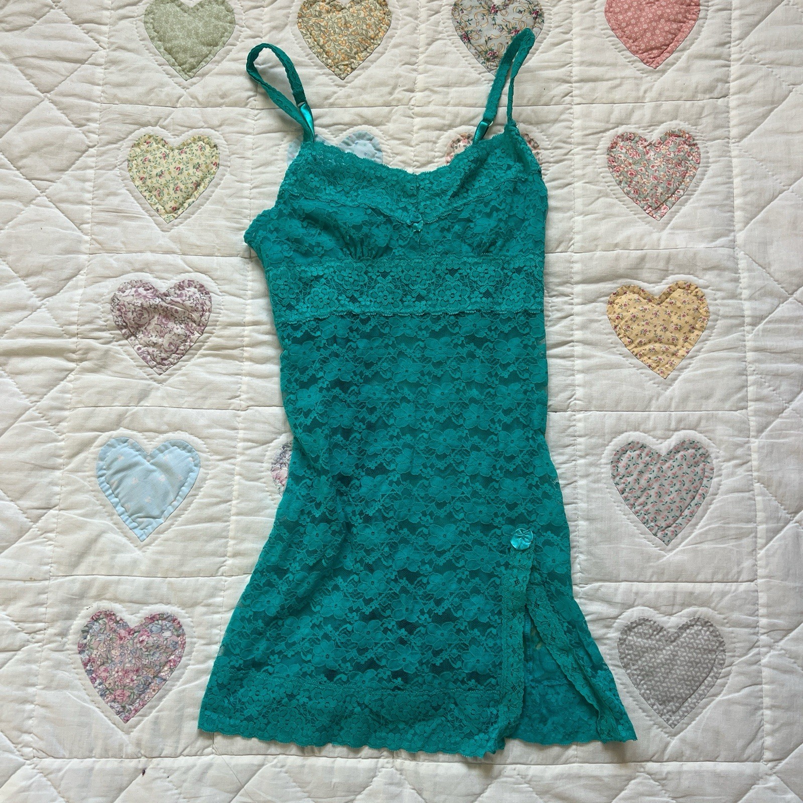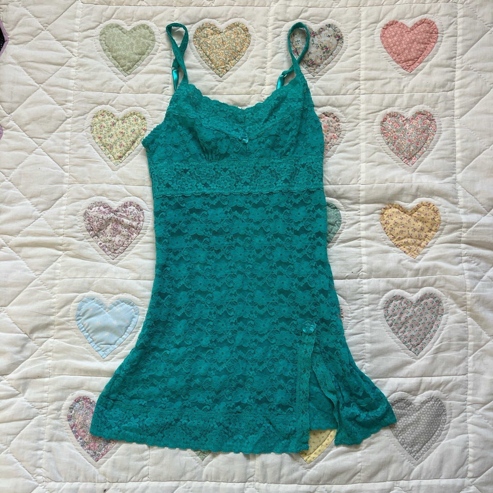 Rampage Intimates Teal Lace Y2K Mini Babydoll Mermaid Slit Lingerie Dress Size S
