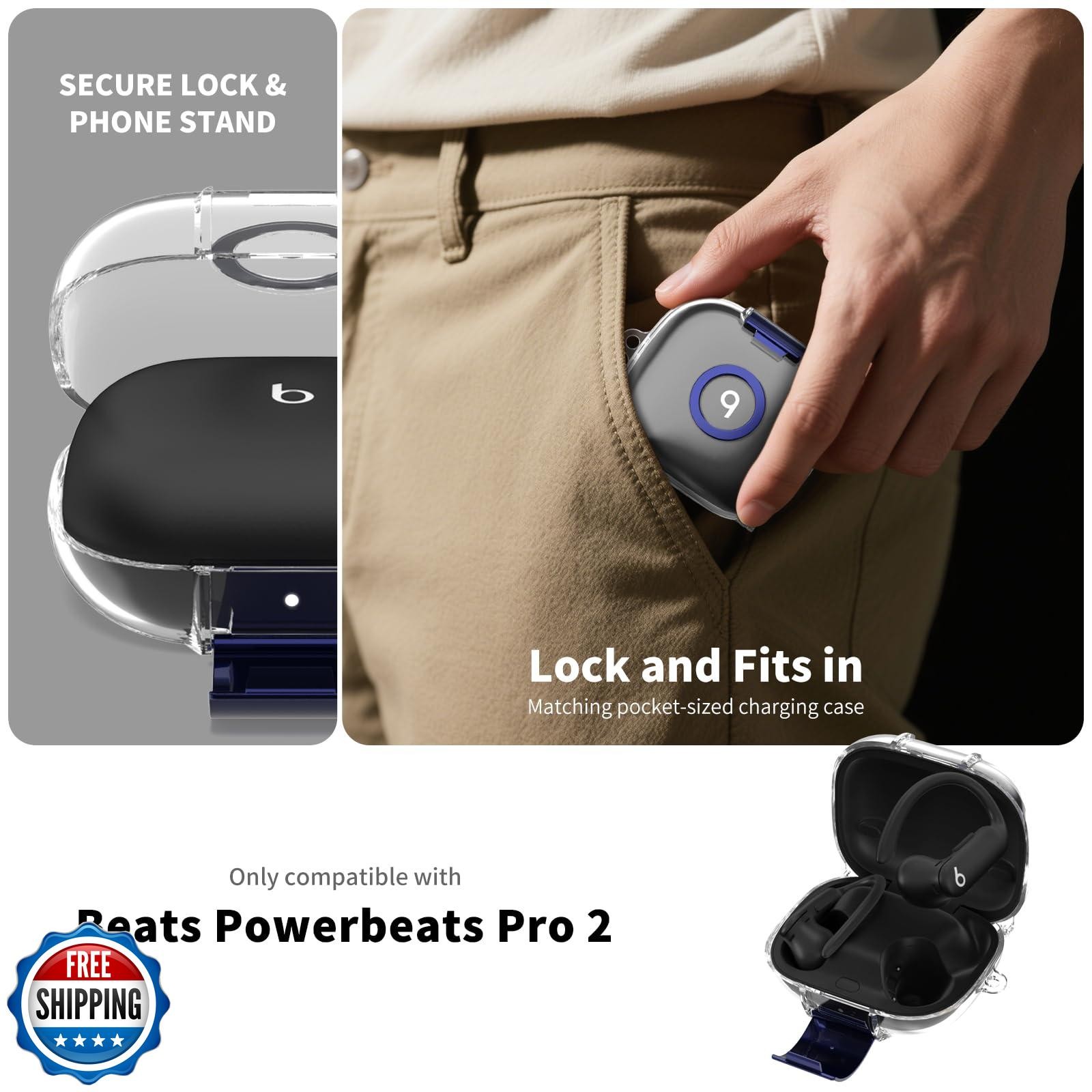 for Beats Powerbeats Pro 2 Case with Phone Stand, Soft Clear TPU