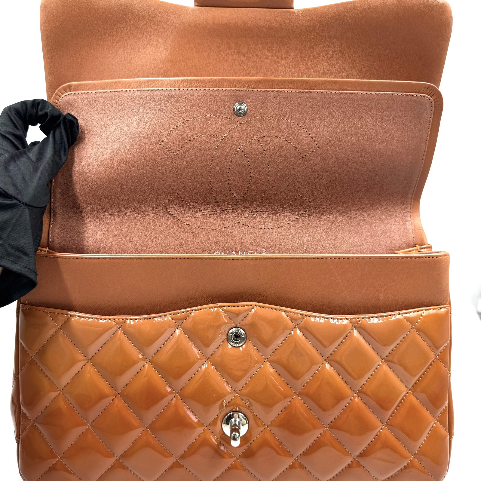 как выглядит Pre-Owned Chanel Classic Double Flap Bag in quilted patent leather фото