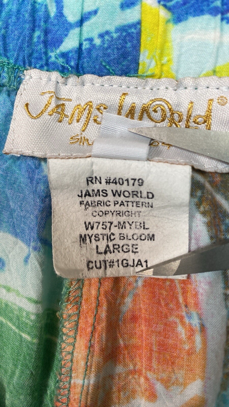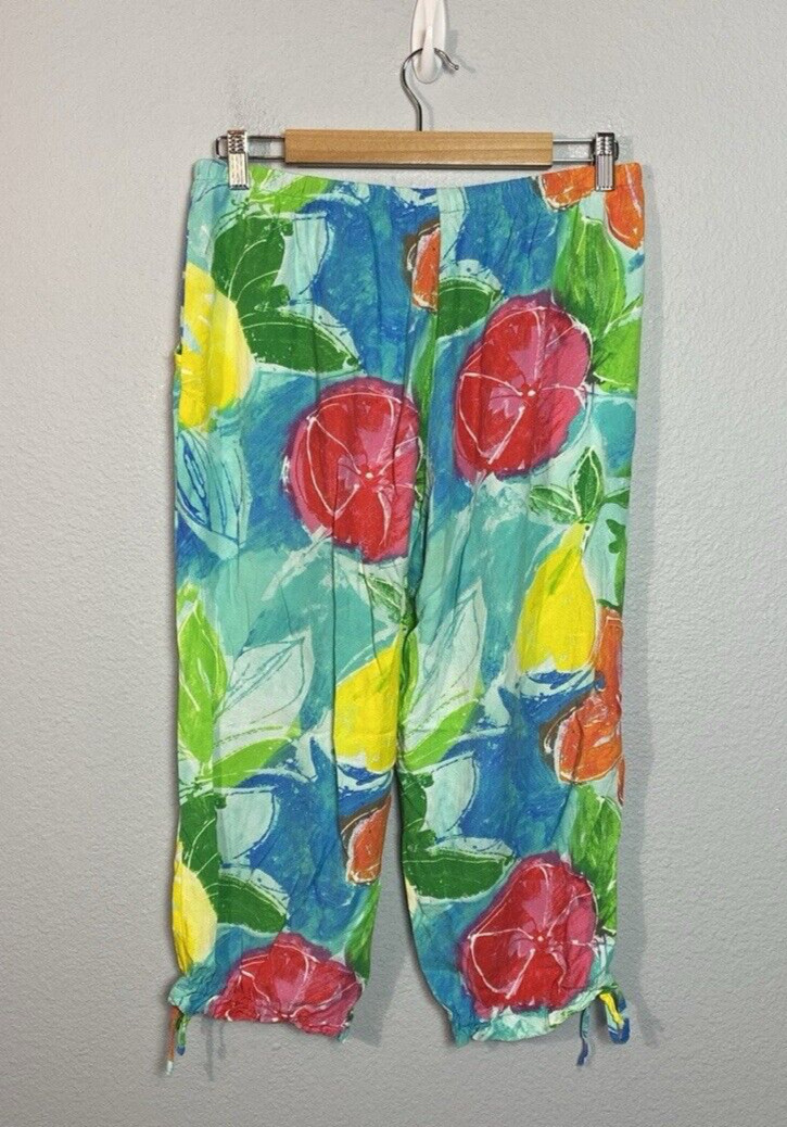 Jams World Pants Womens Large Colorful Cropped Cruise Resort Floral Artsy 90s