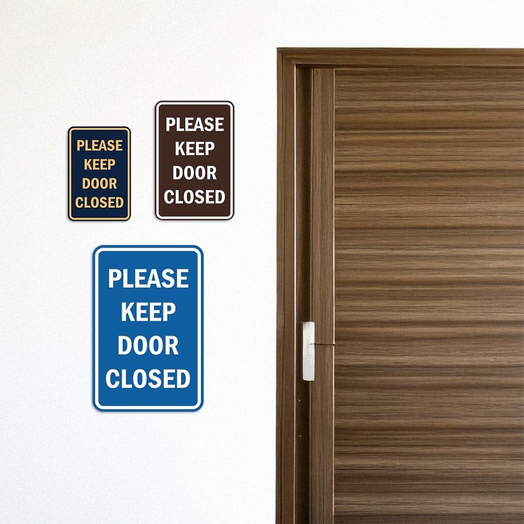 Portrait Round Please Keep Door Closed Sign With Adhesive Tape White/Red Decal