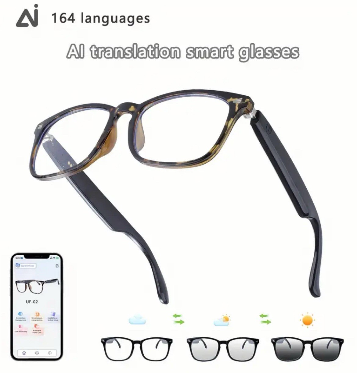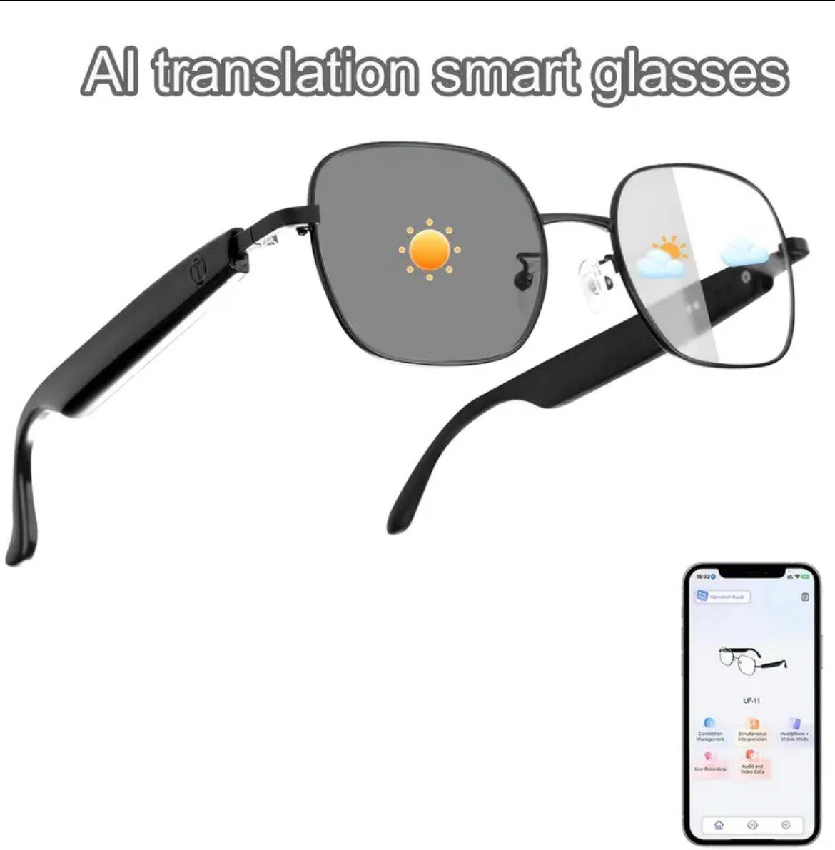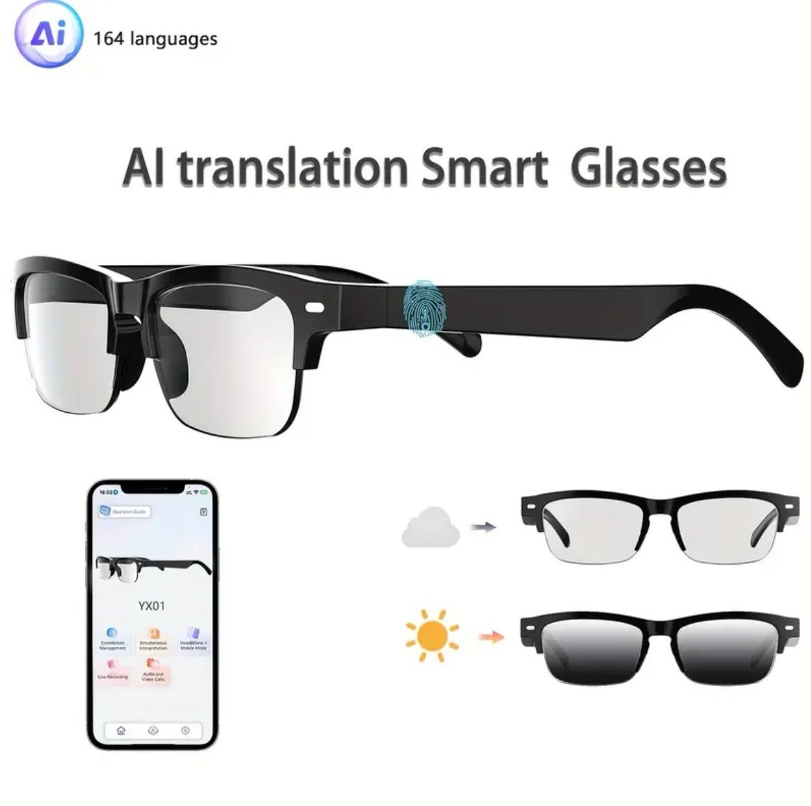 как выглядит AI Smart Glasses with 160-Language Translation, ChatGPT, Audio, Mic HiFi Sound фото