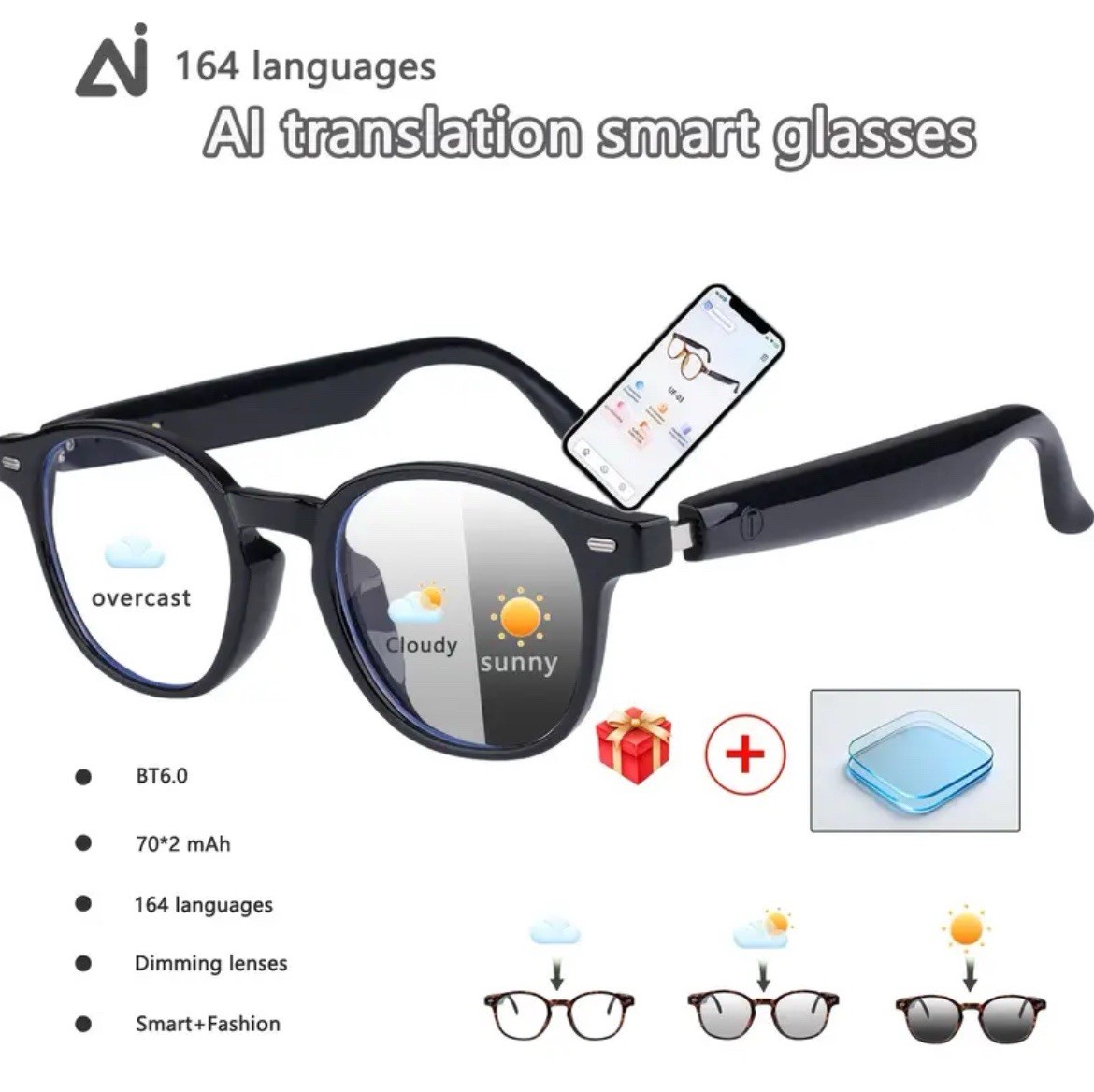 AI Smart Glasses with 160-Language Translation, ChatGPT, Audio, Mic HiFi Sound